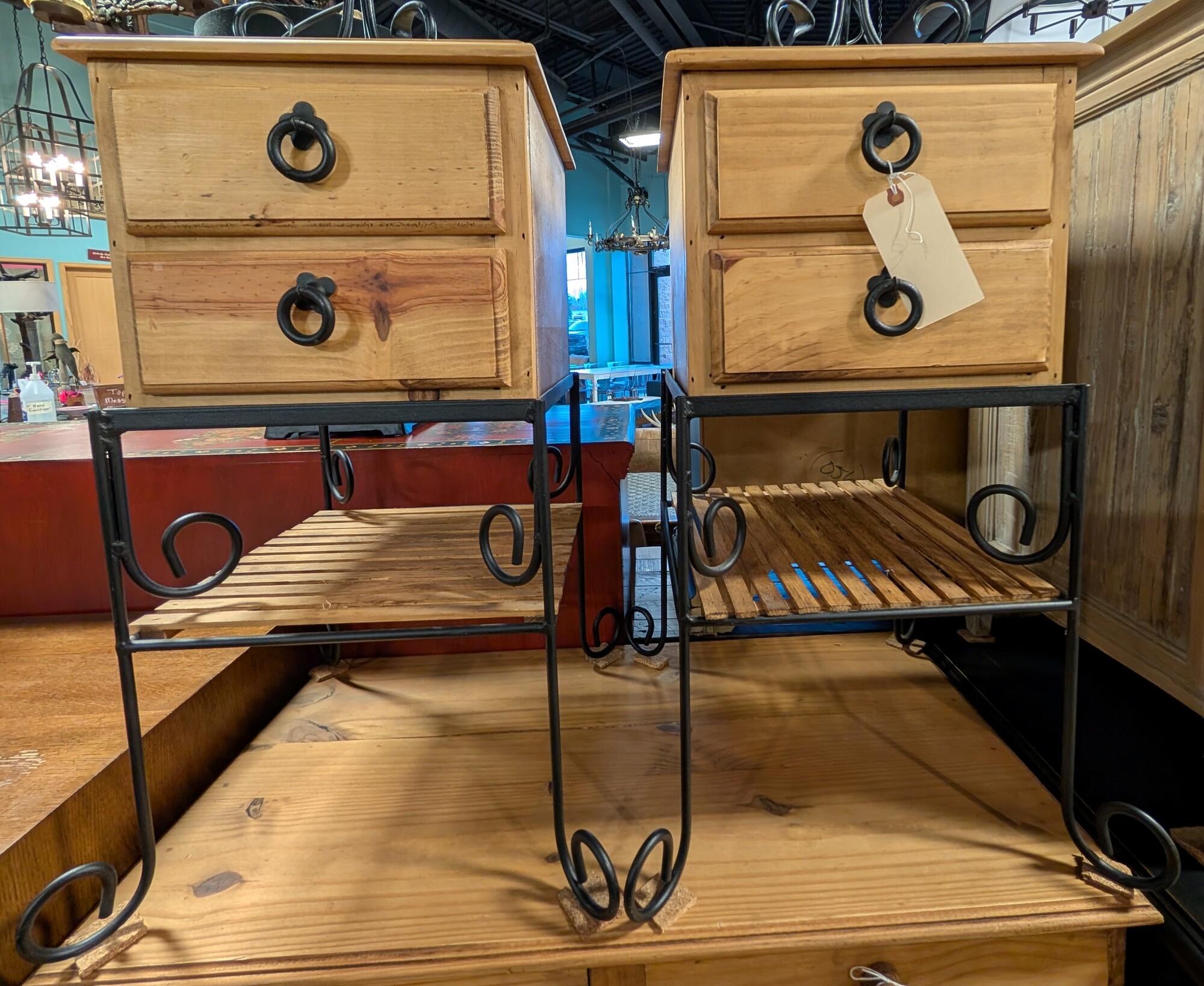 Pine Side On Metal Stand, *PAIR*, 2 Drawer Base 19 x 19 x 30h Box 15 x 15