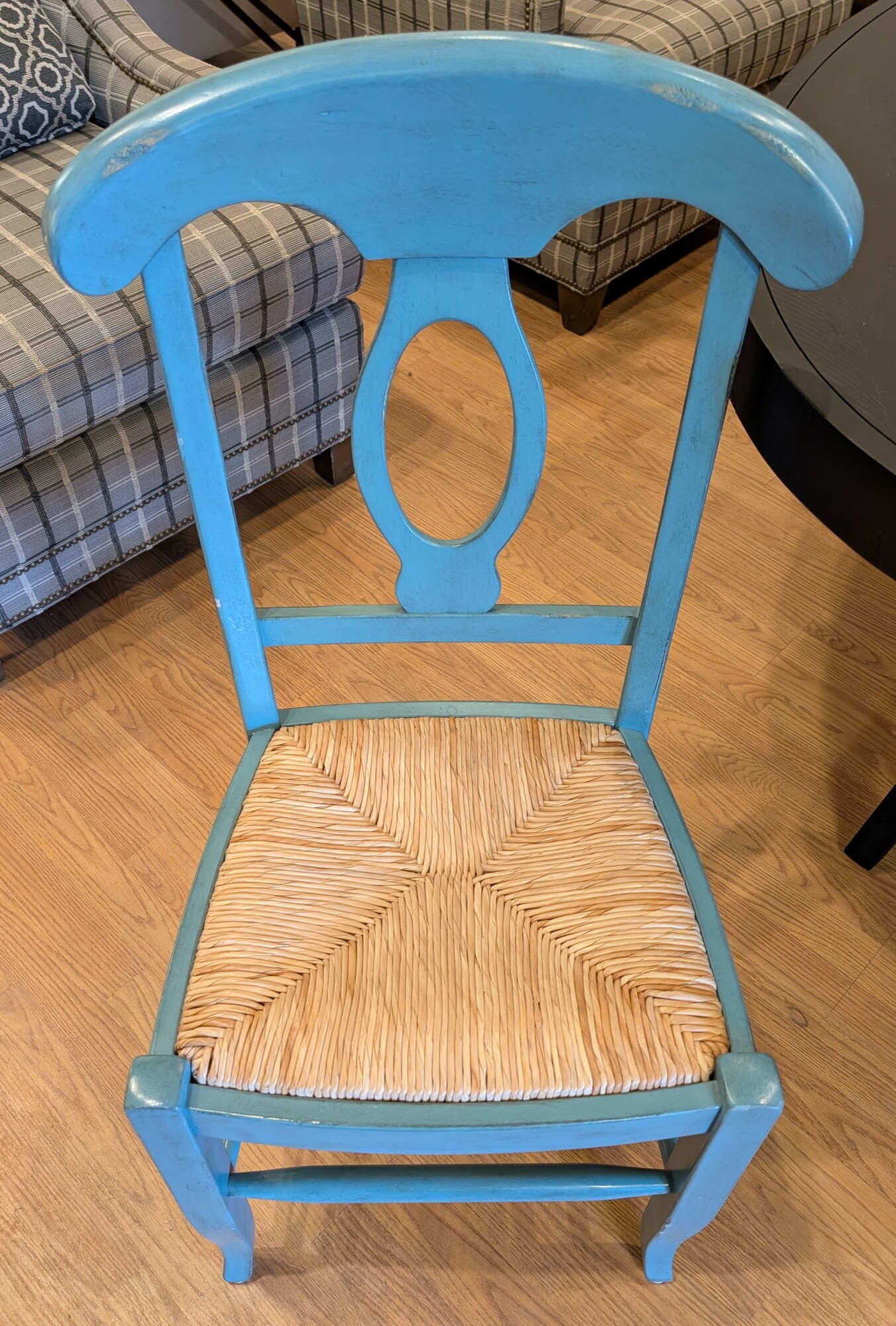 Pottery Barn Napoleon, Aqua Blue, Rush Seat, Set Of 5 17.5 x 15 x 37h