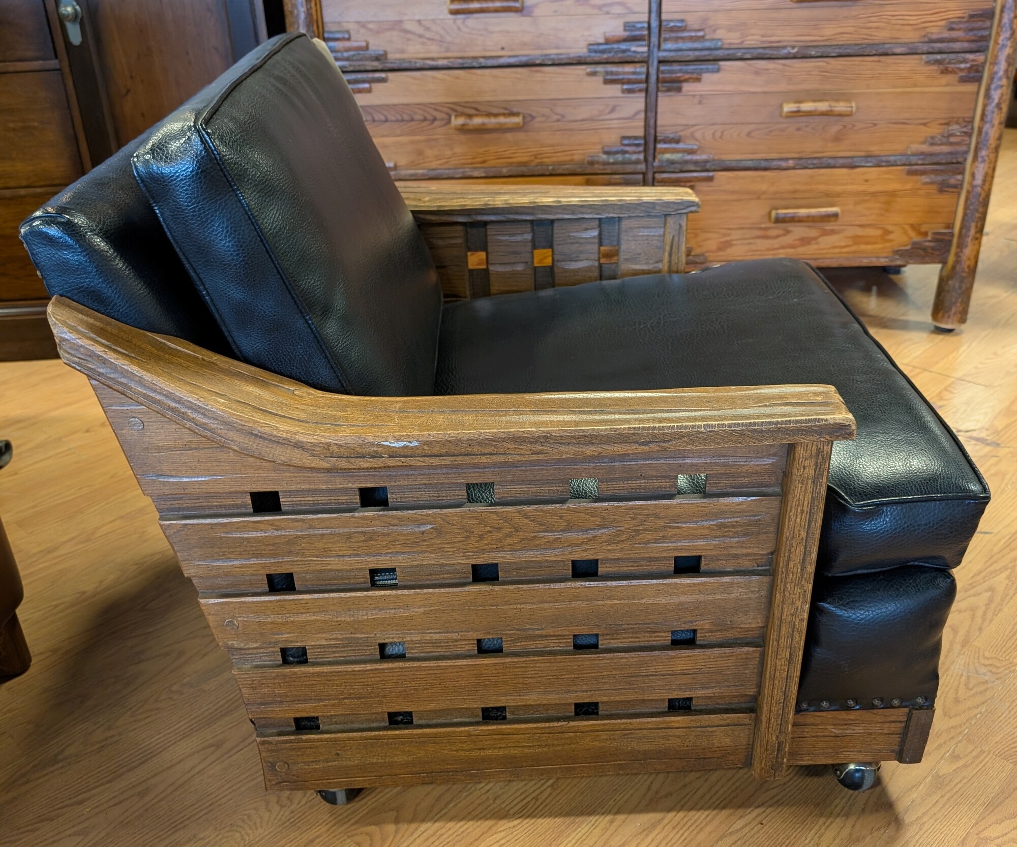 Ranch Oak Vintage Brandt Armchair, Black, Wheels 32 x 32 x 28h