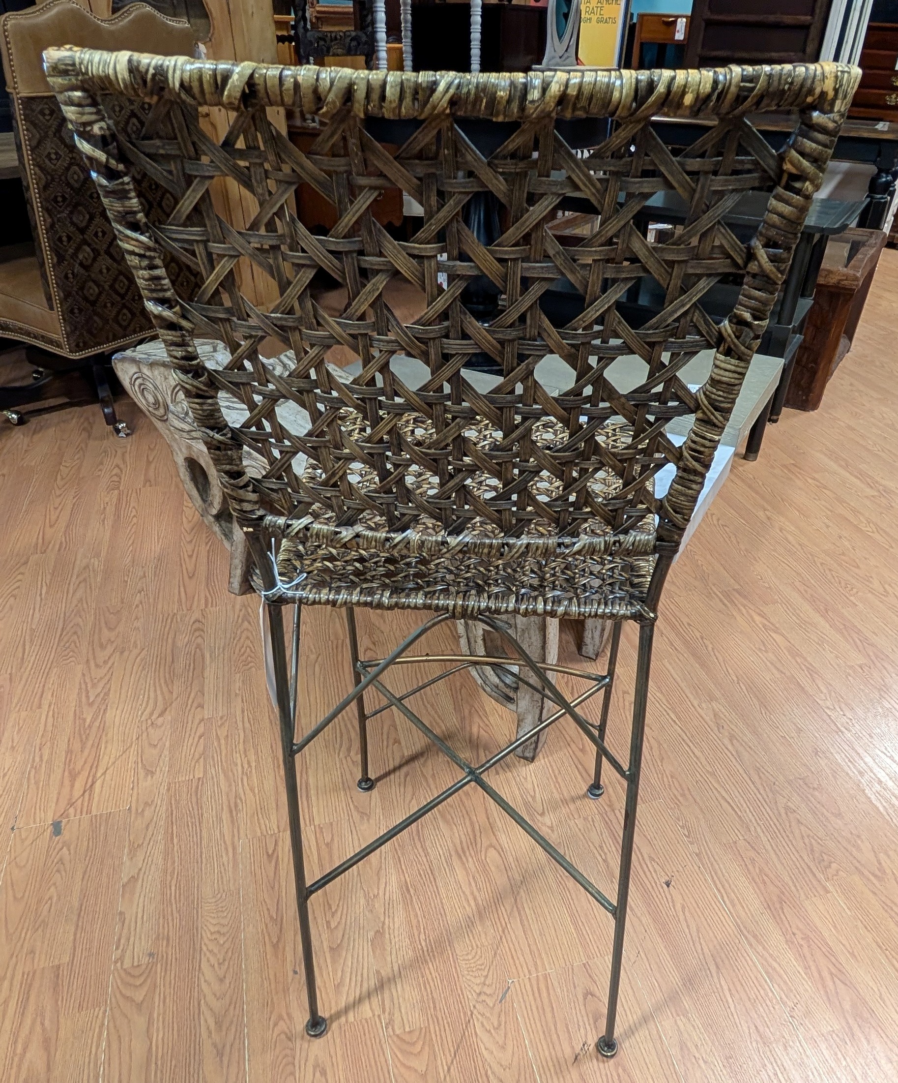 Rattan & Metal Barstool, Light Brown 17 x 16 x 44h Seat Height 29in