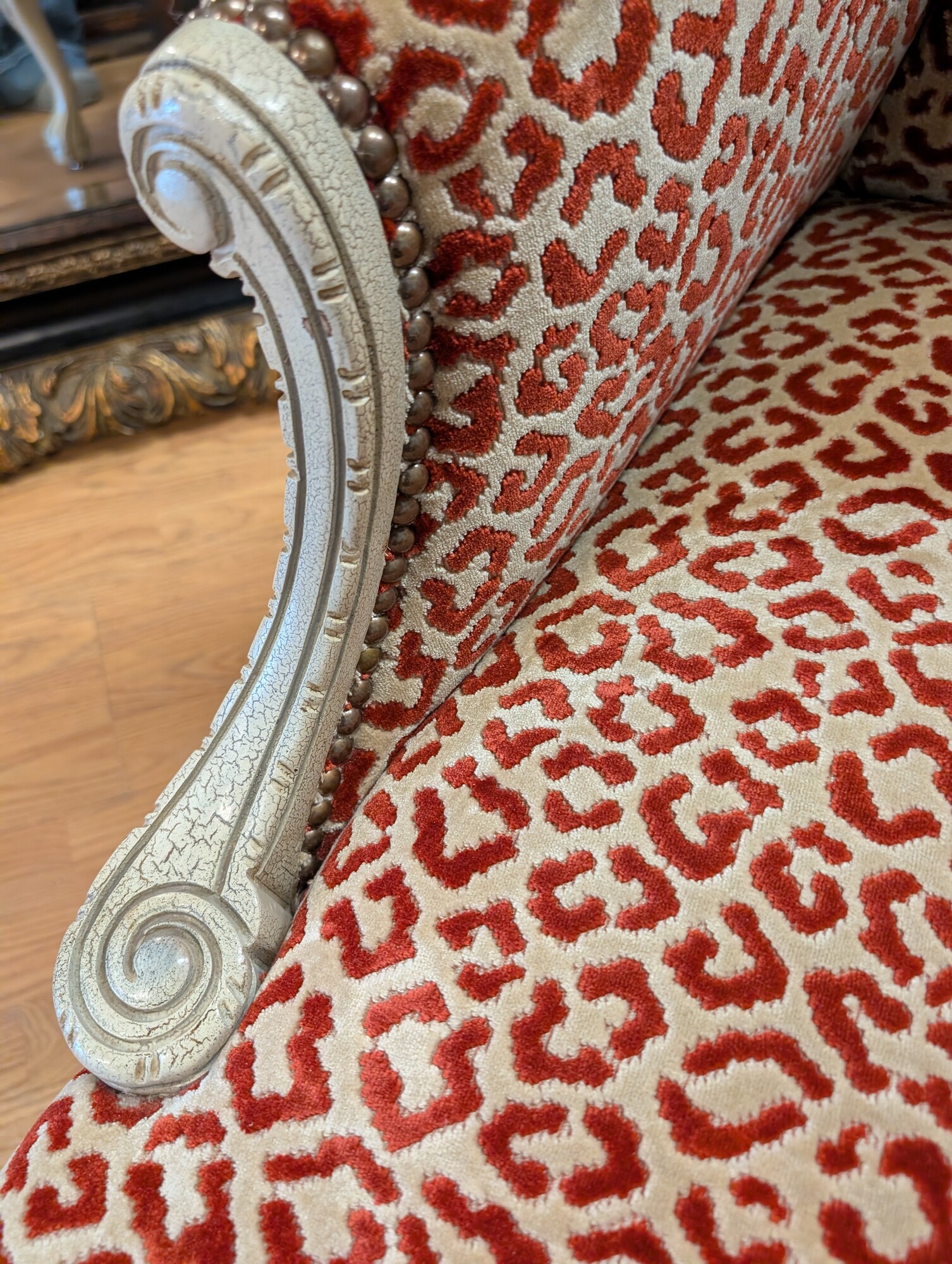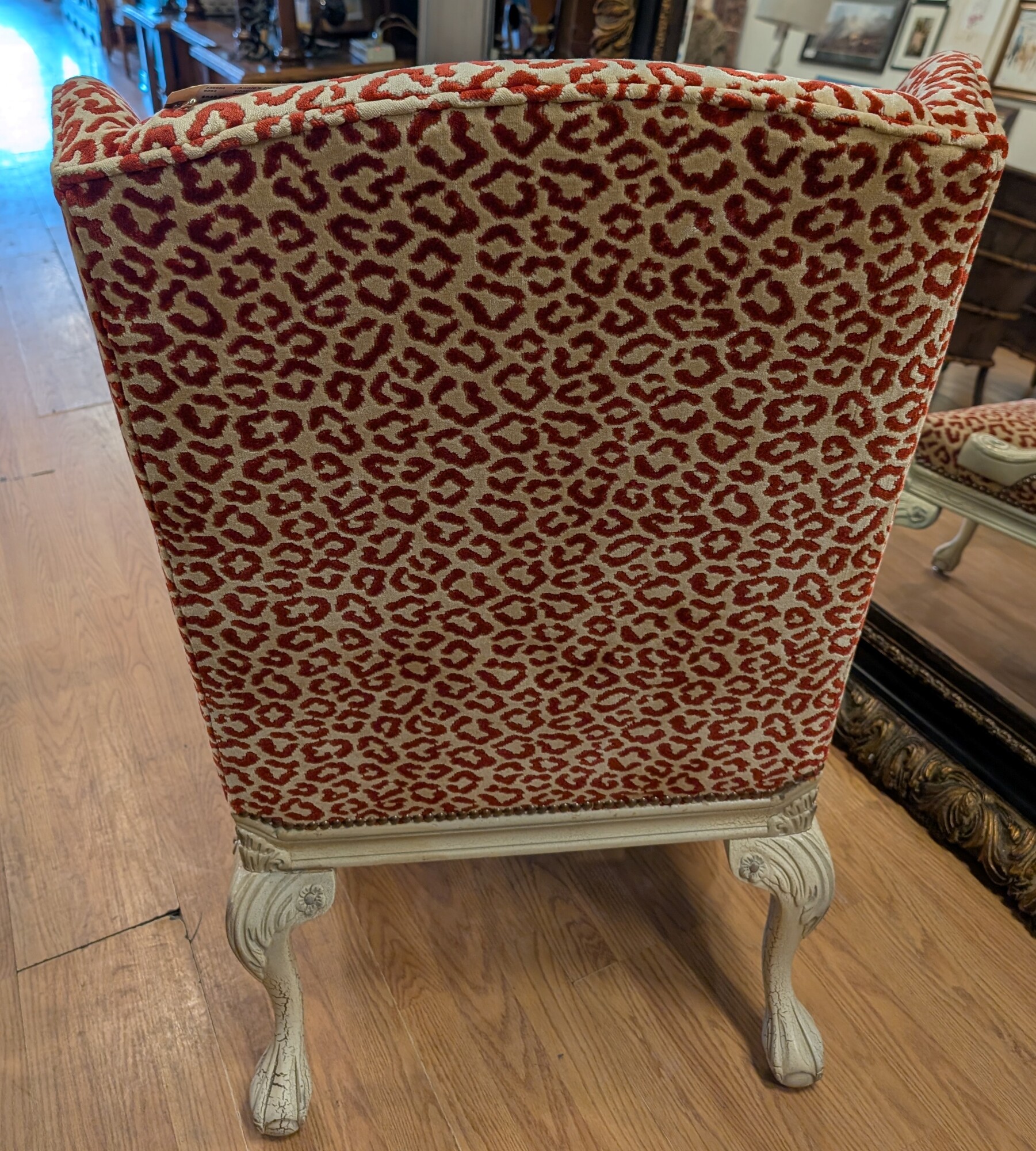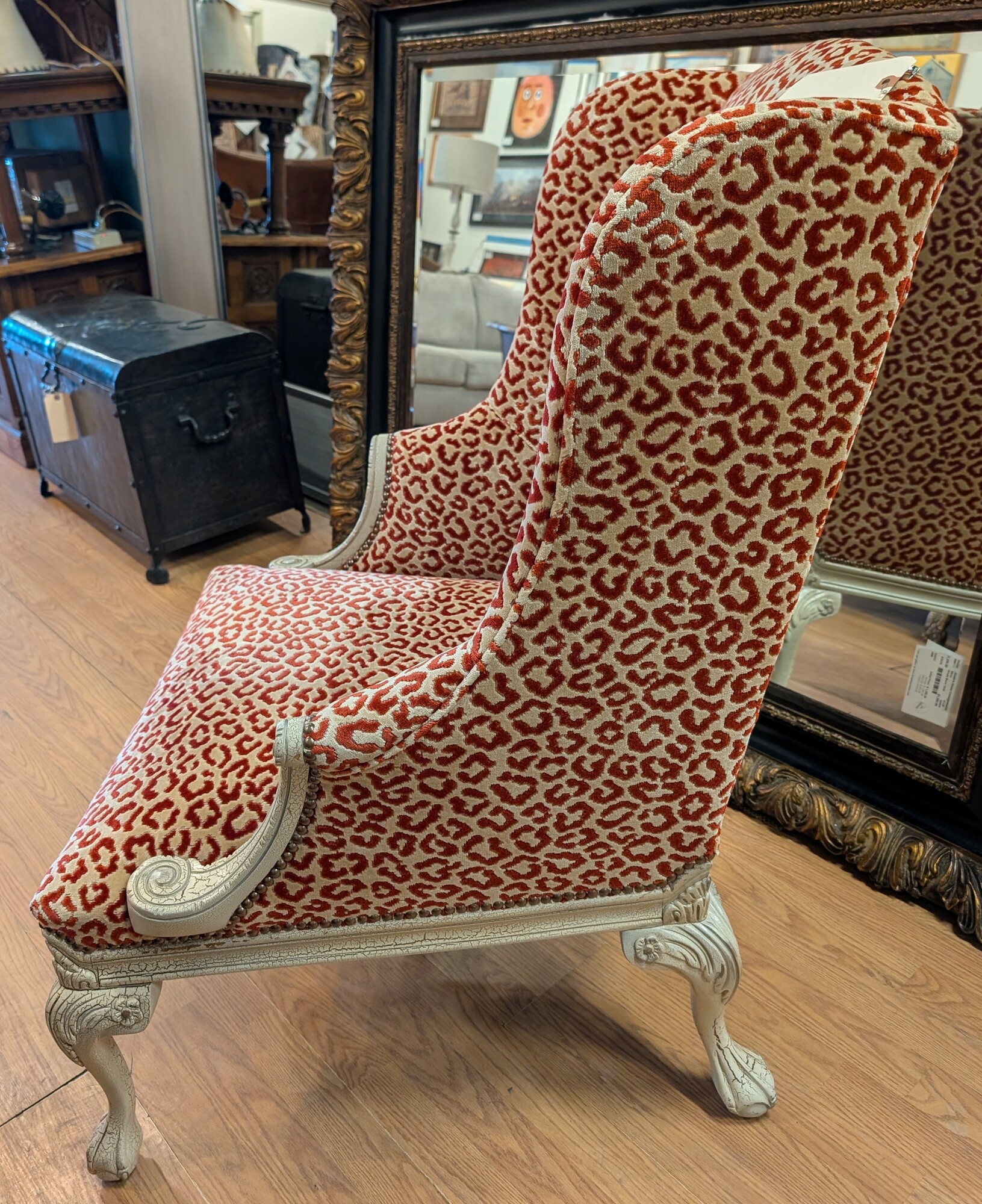 Red & Cream Leopard French Chair, Wingback 28 x 30 x 42 SH 18in