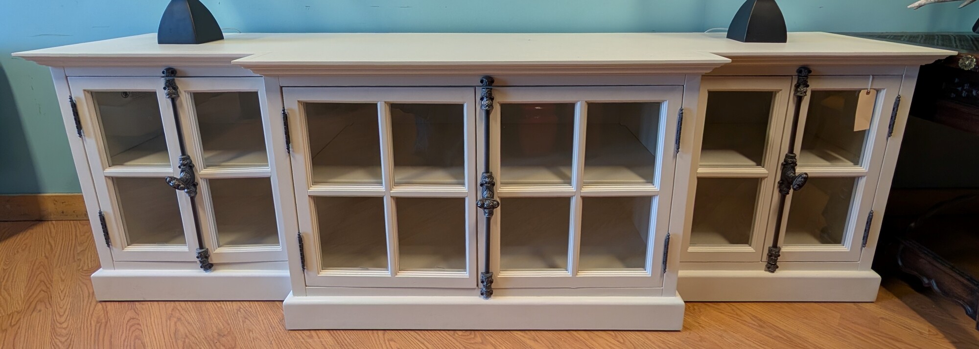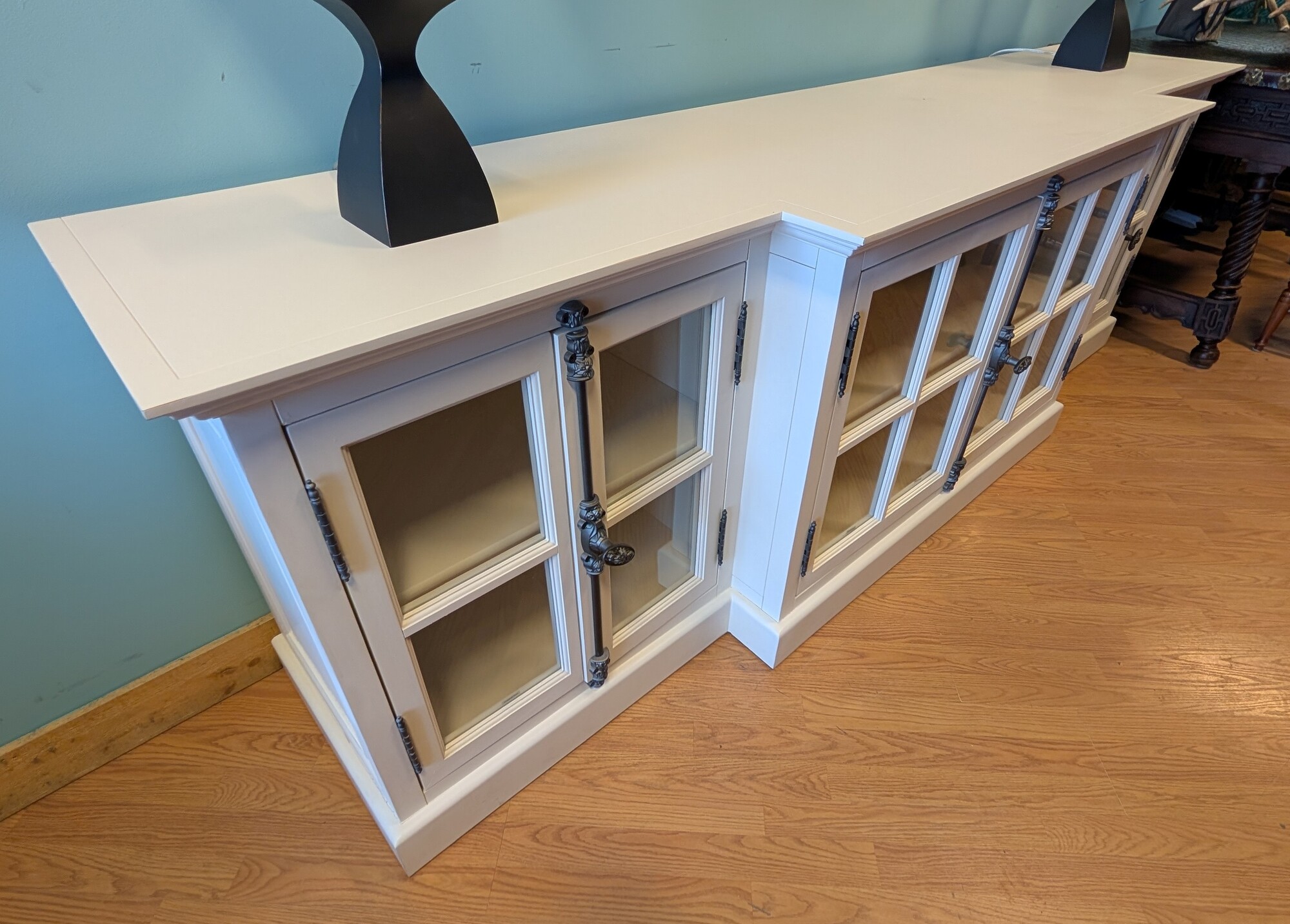 RH Casement Media Console, White, 4 Glass Doors 100 x 24 x 32h
