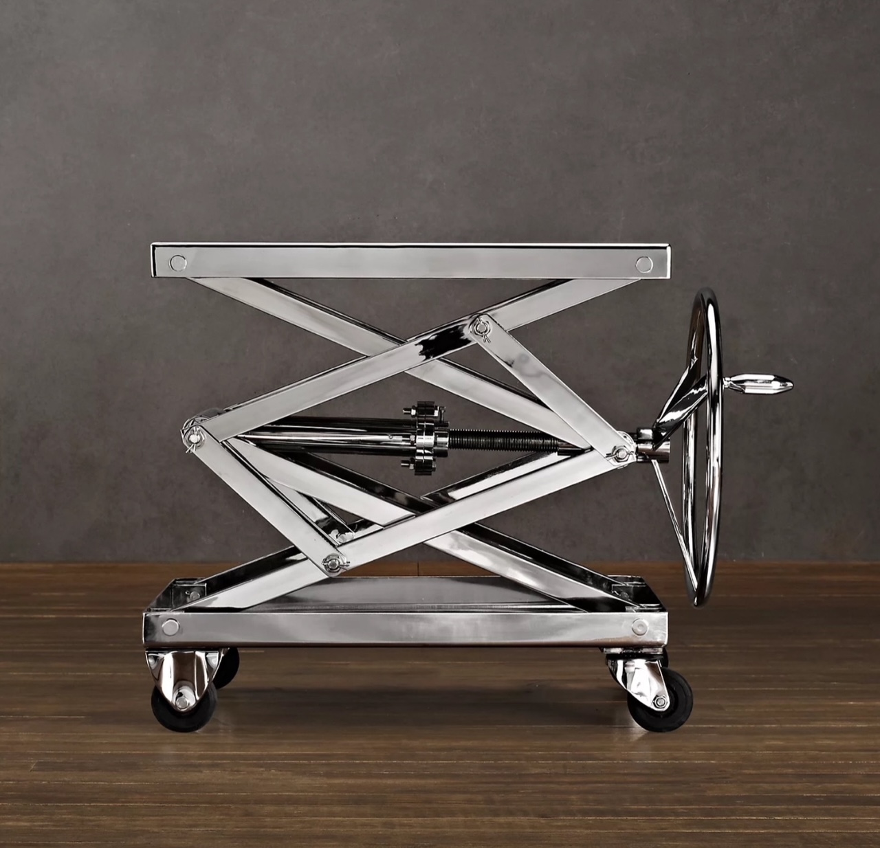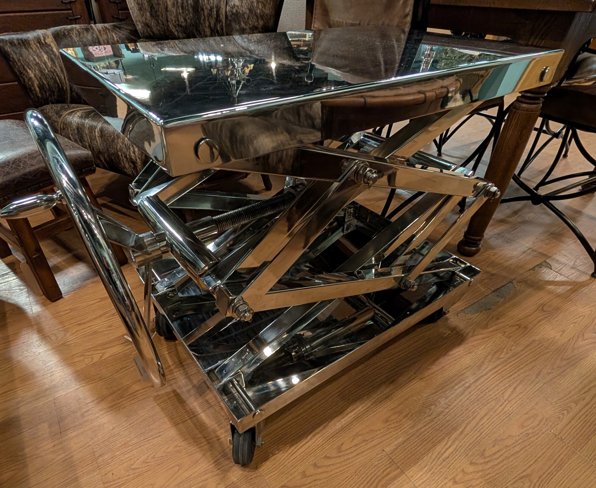 RH Industrial Scissor Adjustable Table, Steel, Polished 41 x 23