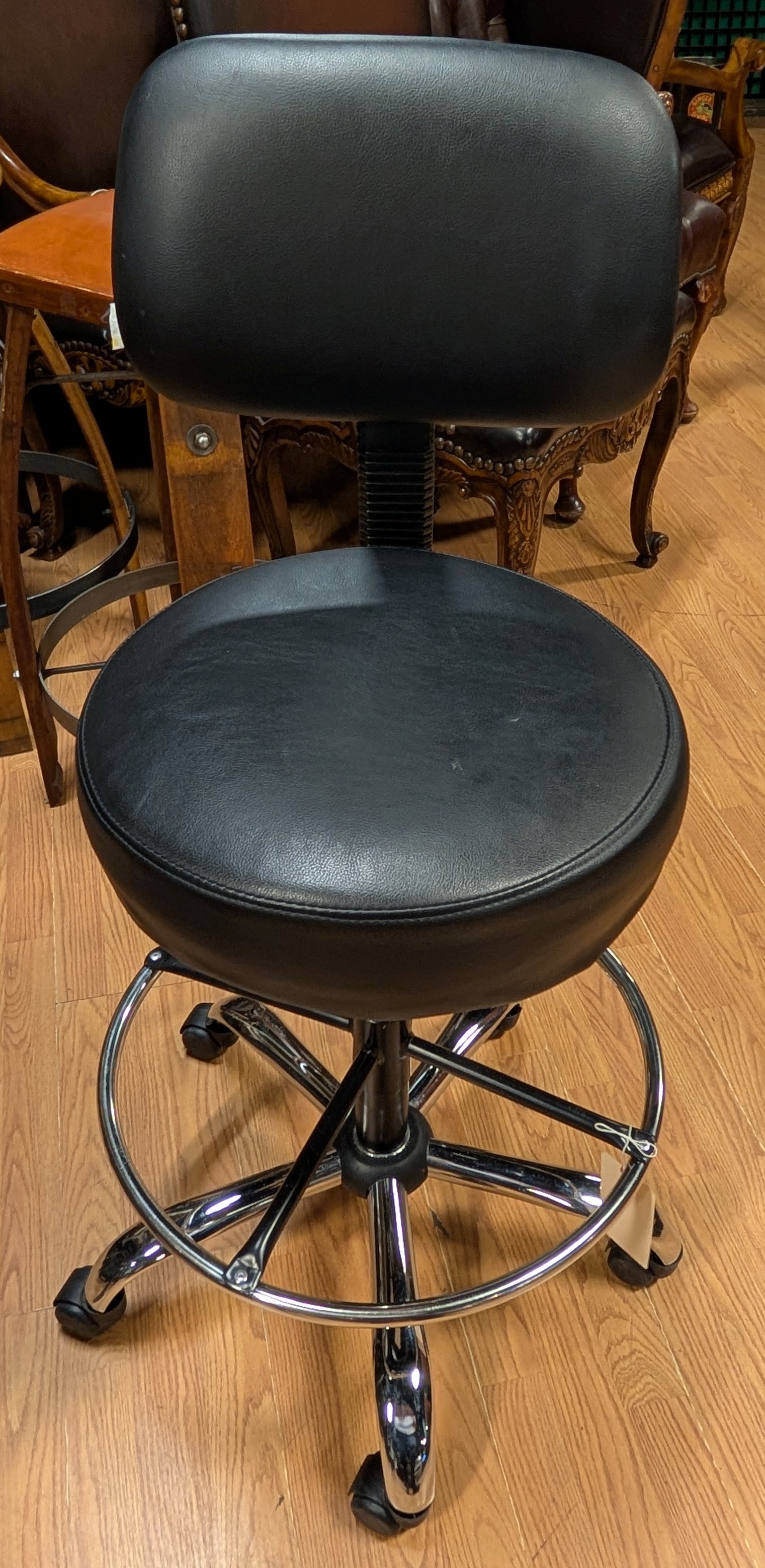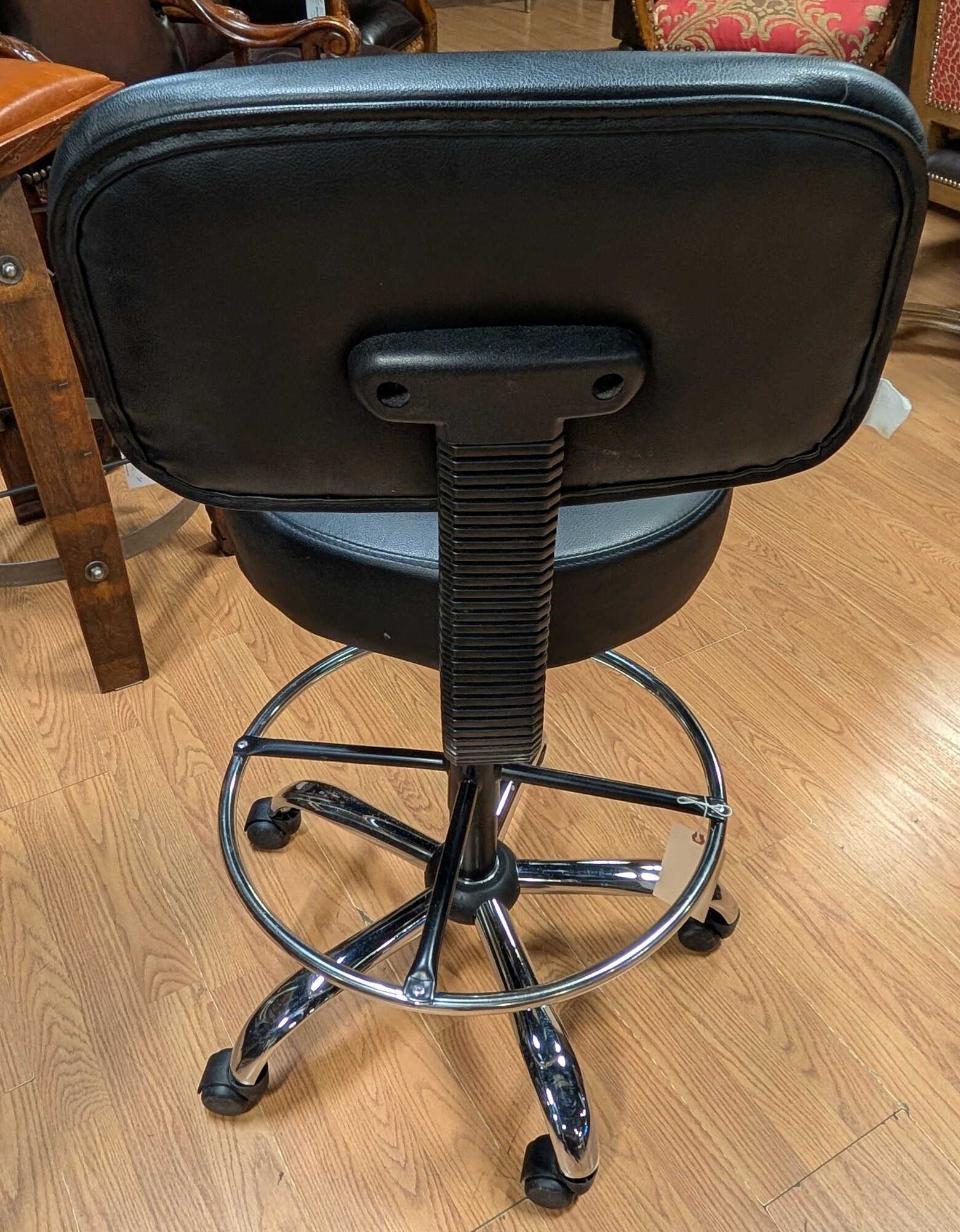 Rolling Drafting Chair, Black, Chrome 24w x 40h Adjustable seat 28-34in