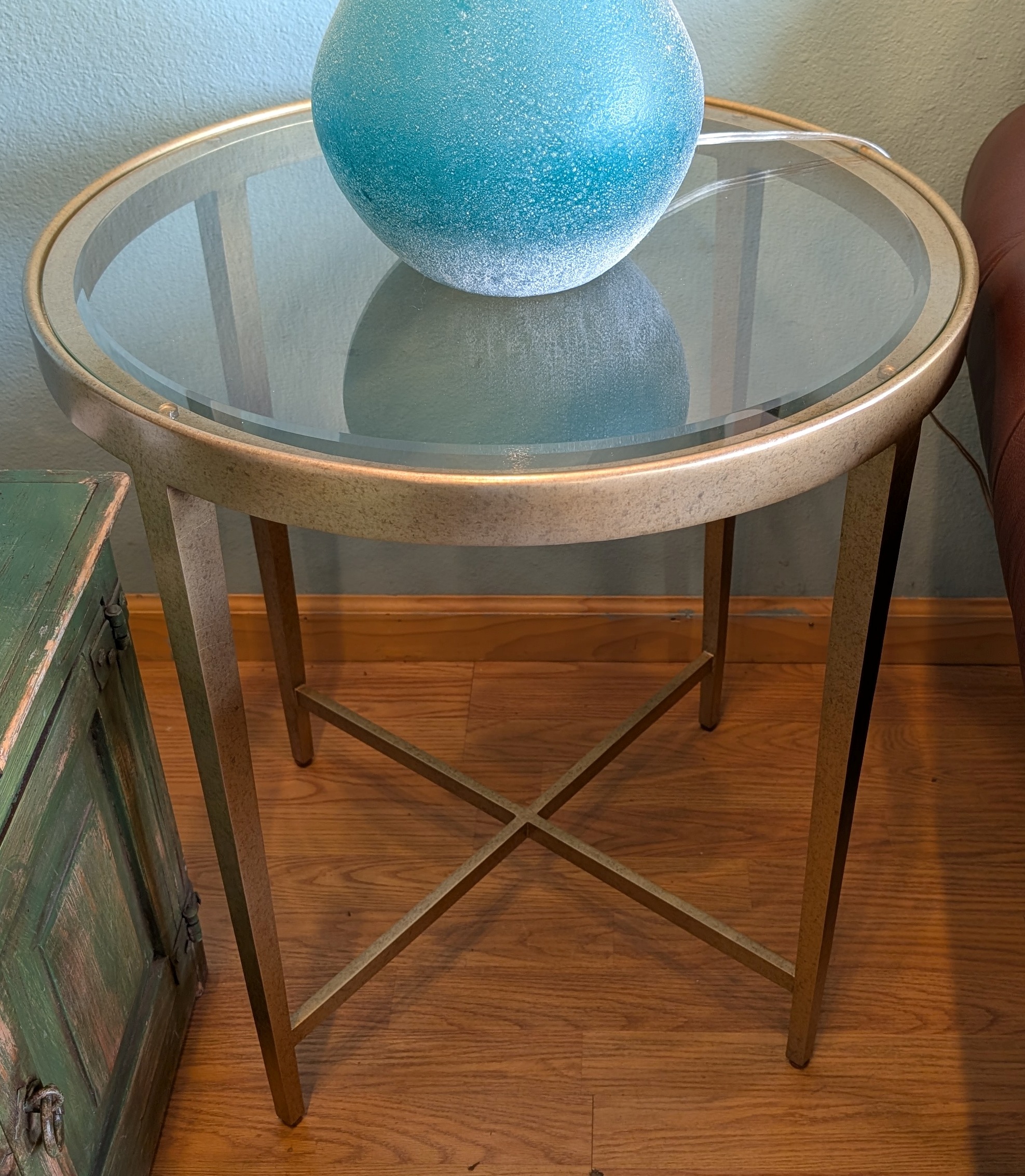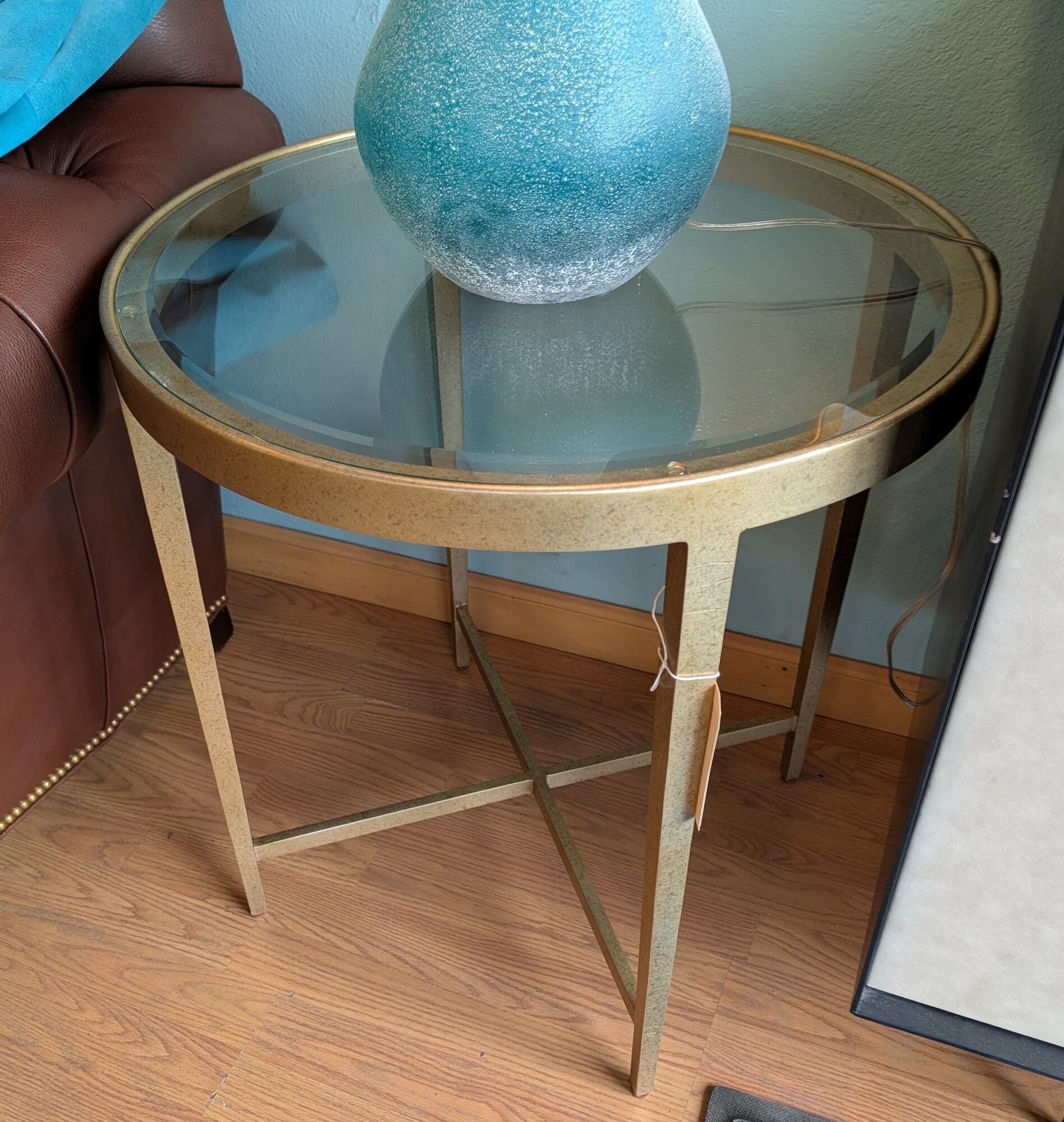 Round Glass Top Side, Gold, PAIR 25 x 25h