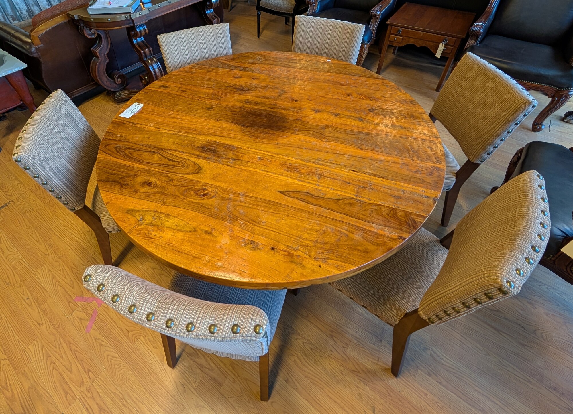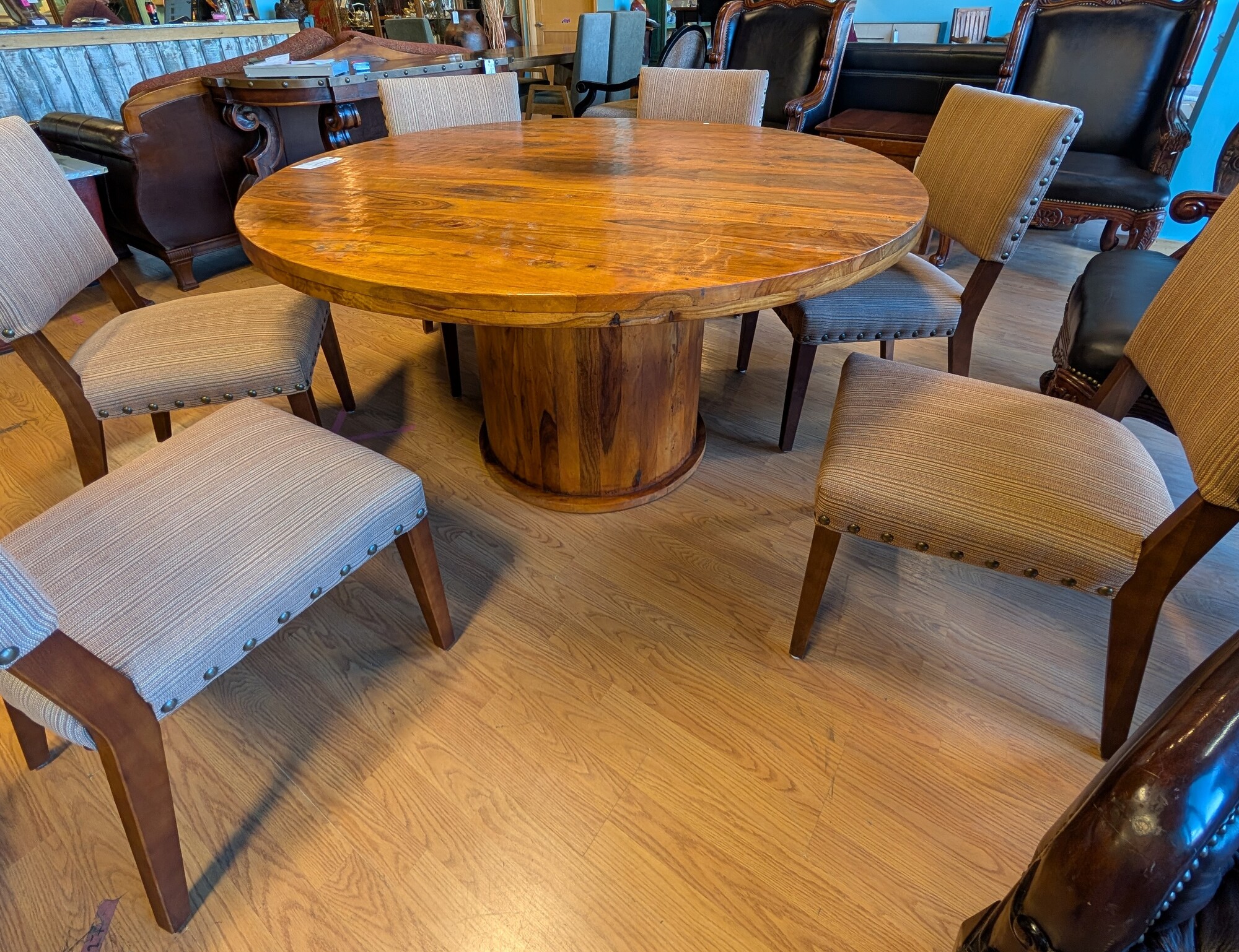 Round Wood Cylinder Base, Four Hands, 6 Chairs 58in Round Chairs 20 x 21 x 35h