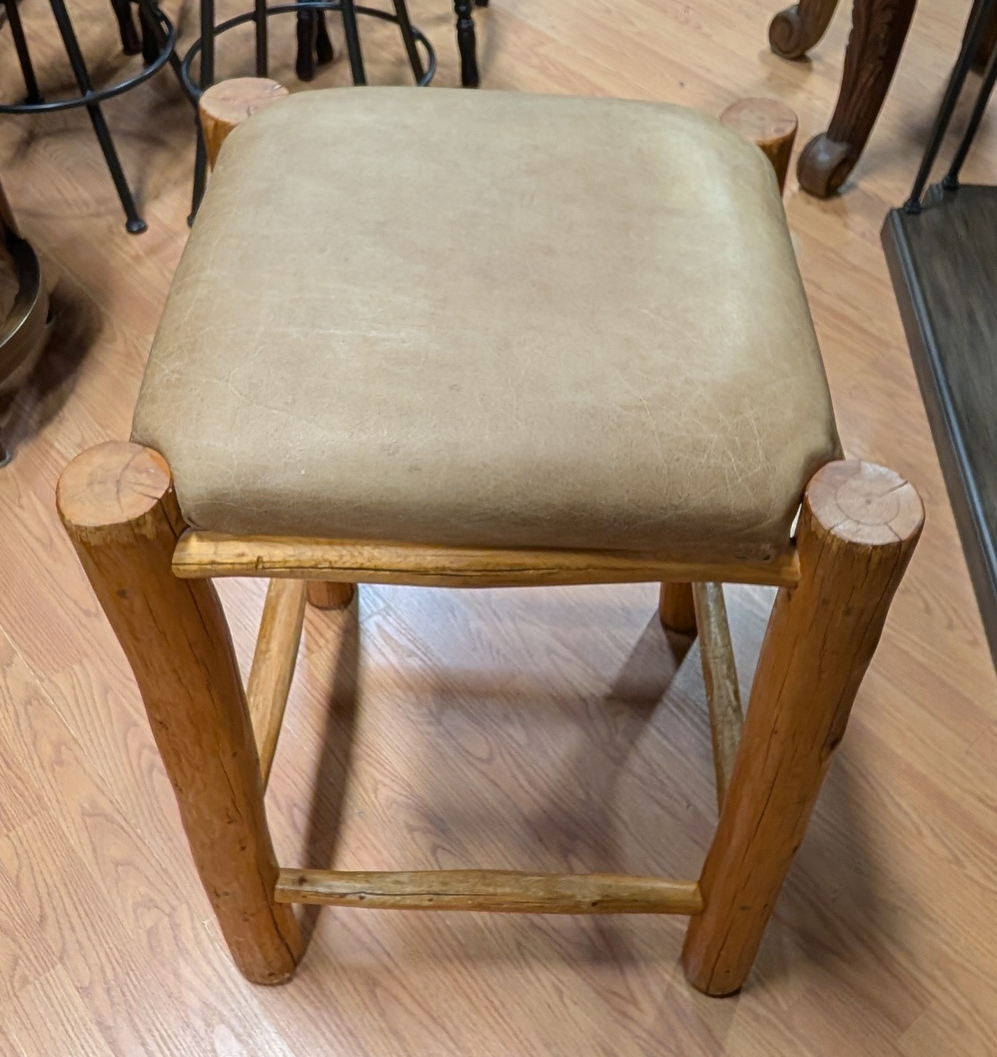Rustic Log & Leather, Brown, Backless 18 x 18 x 28