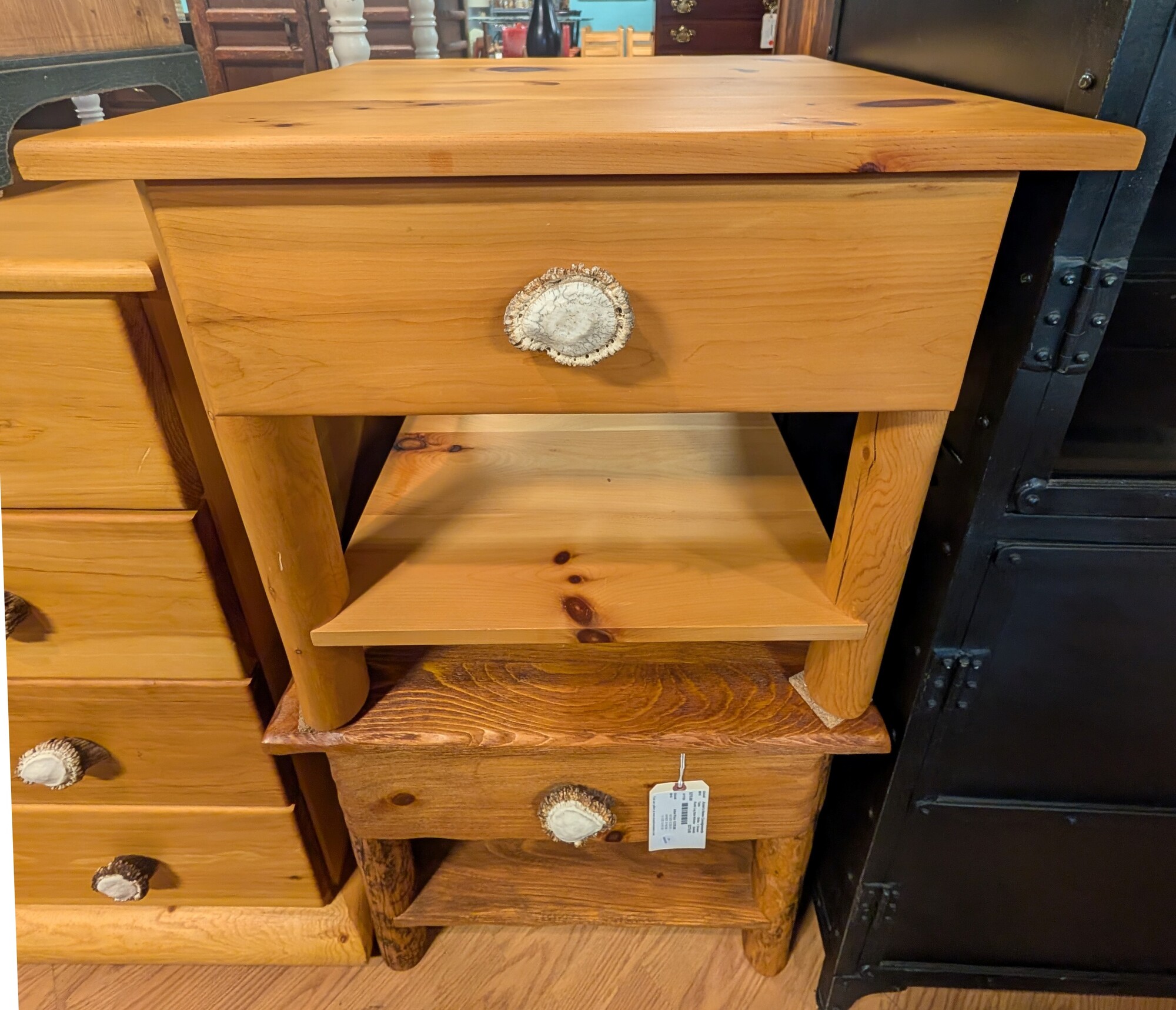 Rustic Log Side W/Antler, Light Stain, 1 Drawer 23 x 21 x 22.5h