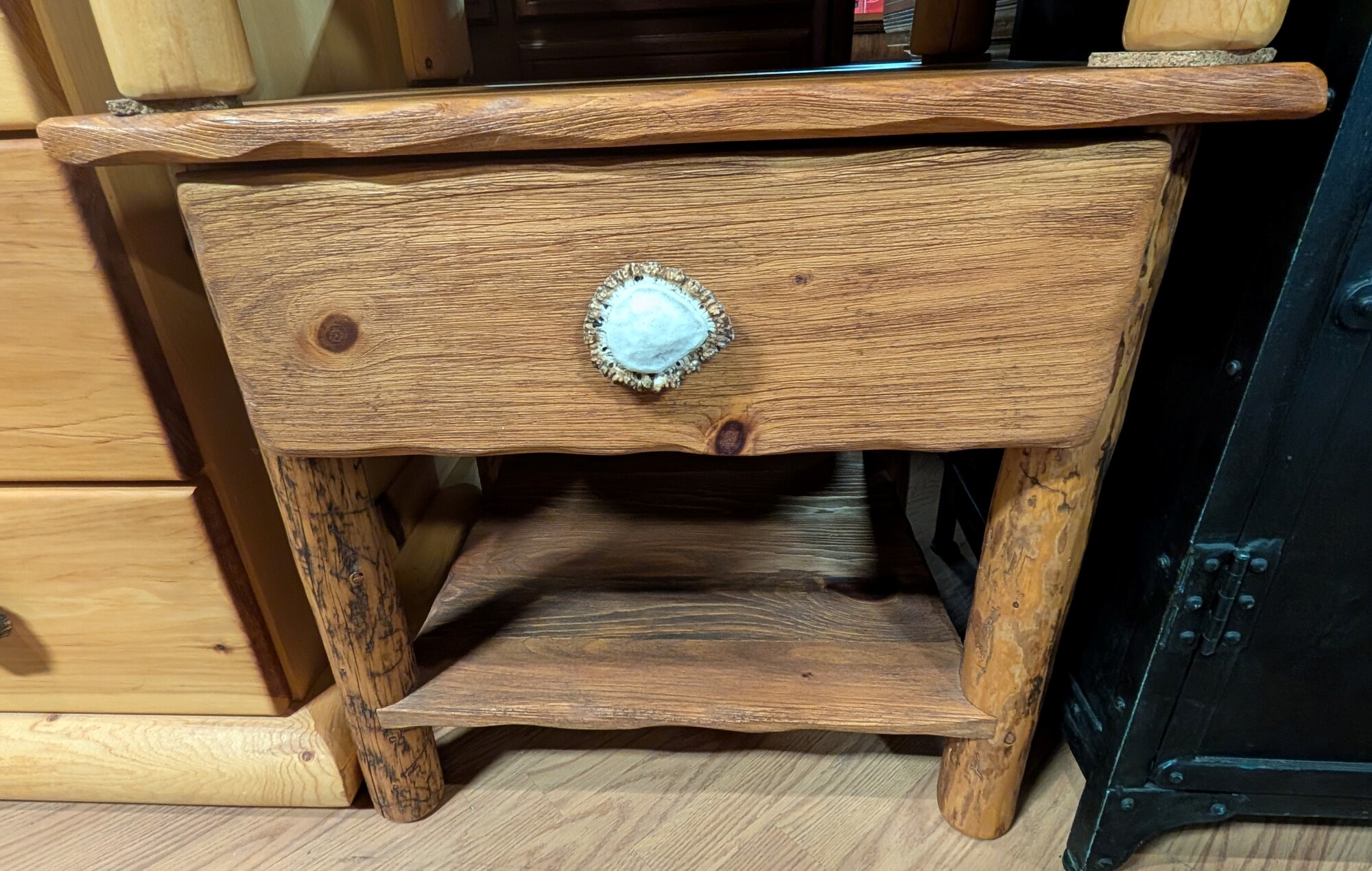 Rustic Log Side W/Antler, Medium Stain, 1 Drawer 23 x 21 x 22.5h