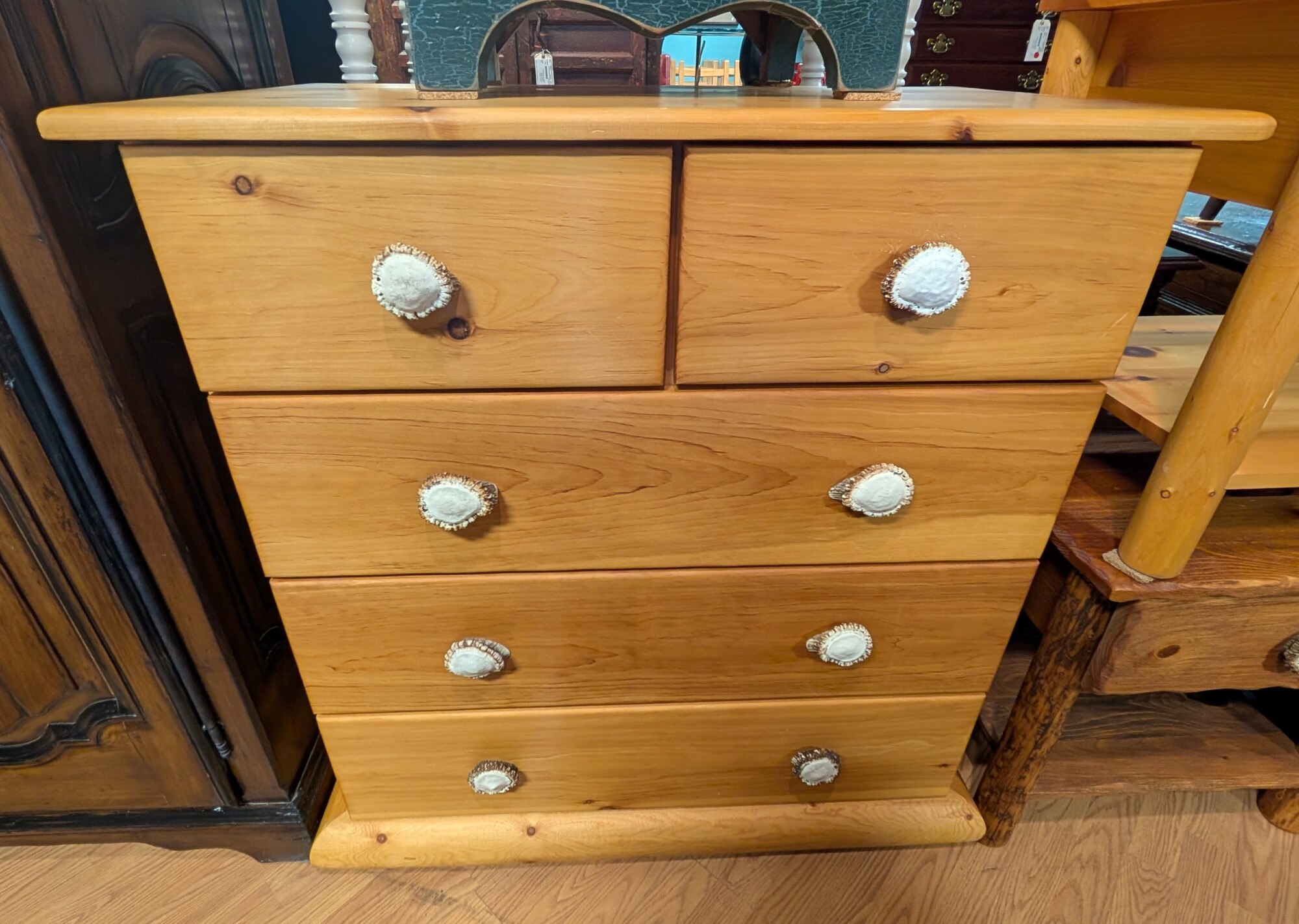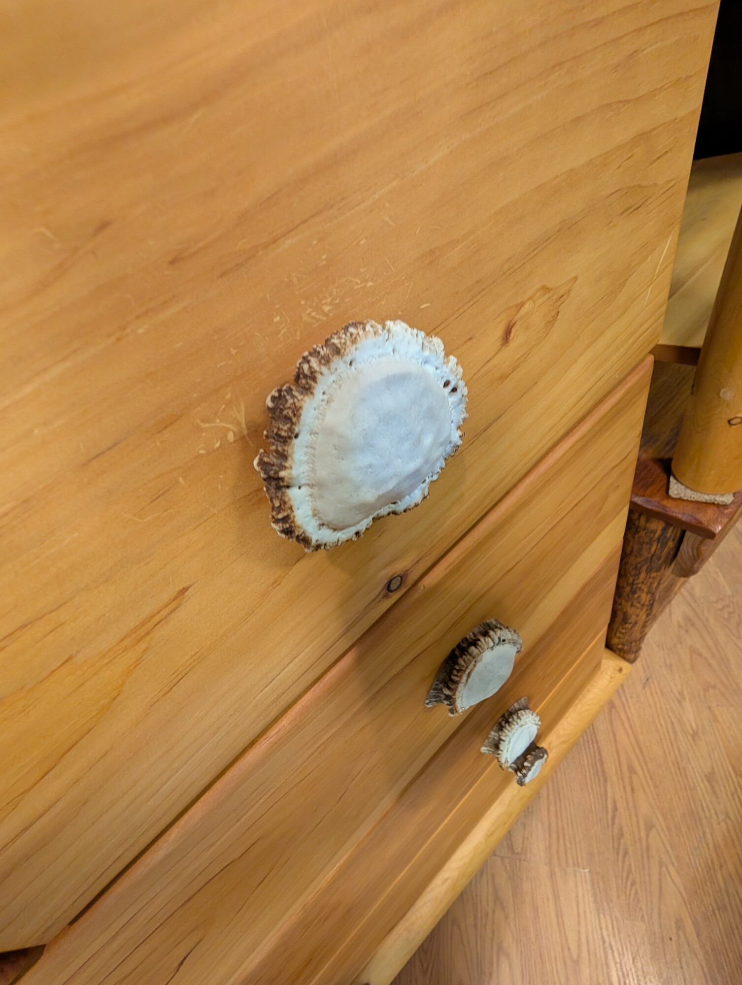 Rustic Log W/Antler Pulls, Light Stain, 5 Drawer 39 x 23 x 41h