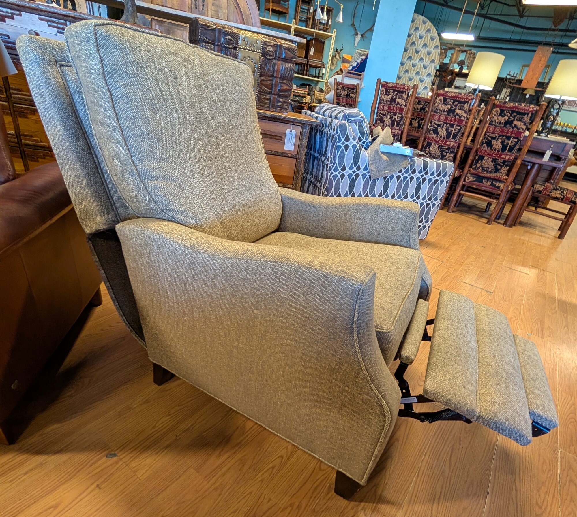 Sam Moore Recliner, Tan/Grey/White 30 x 34 x 40h 64in Reclined