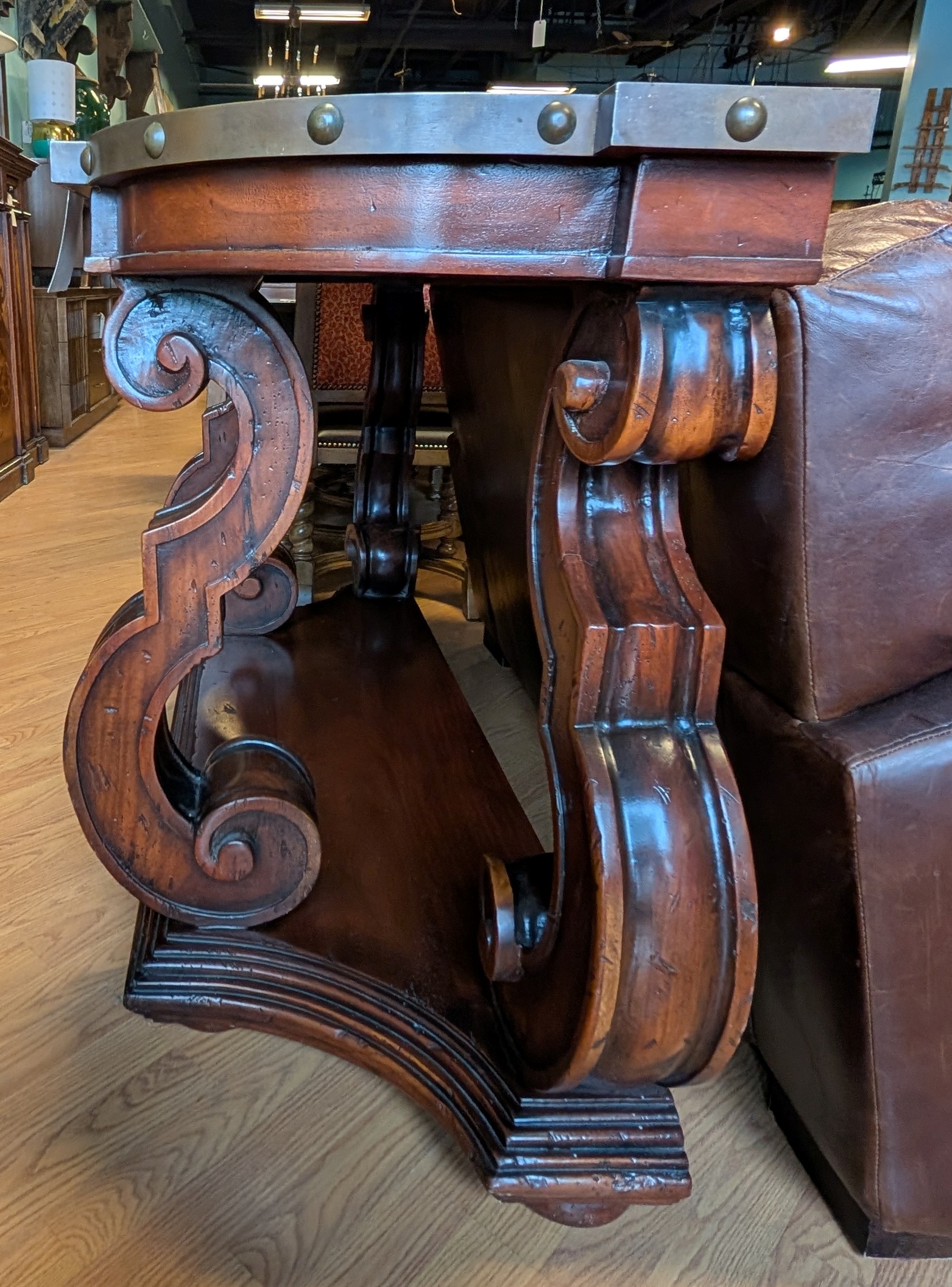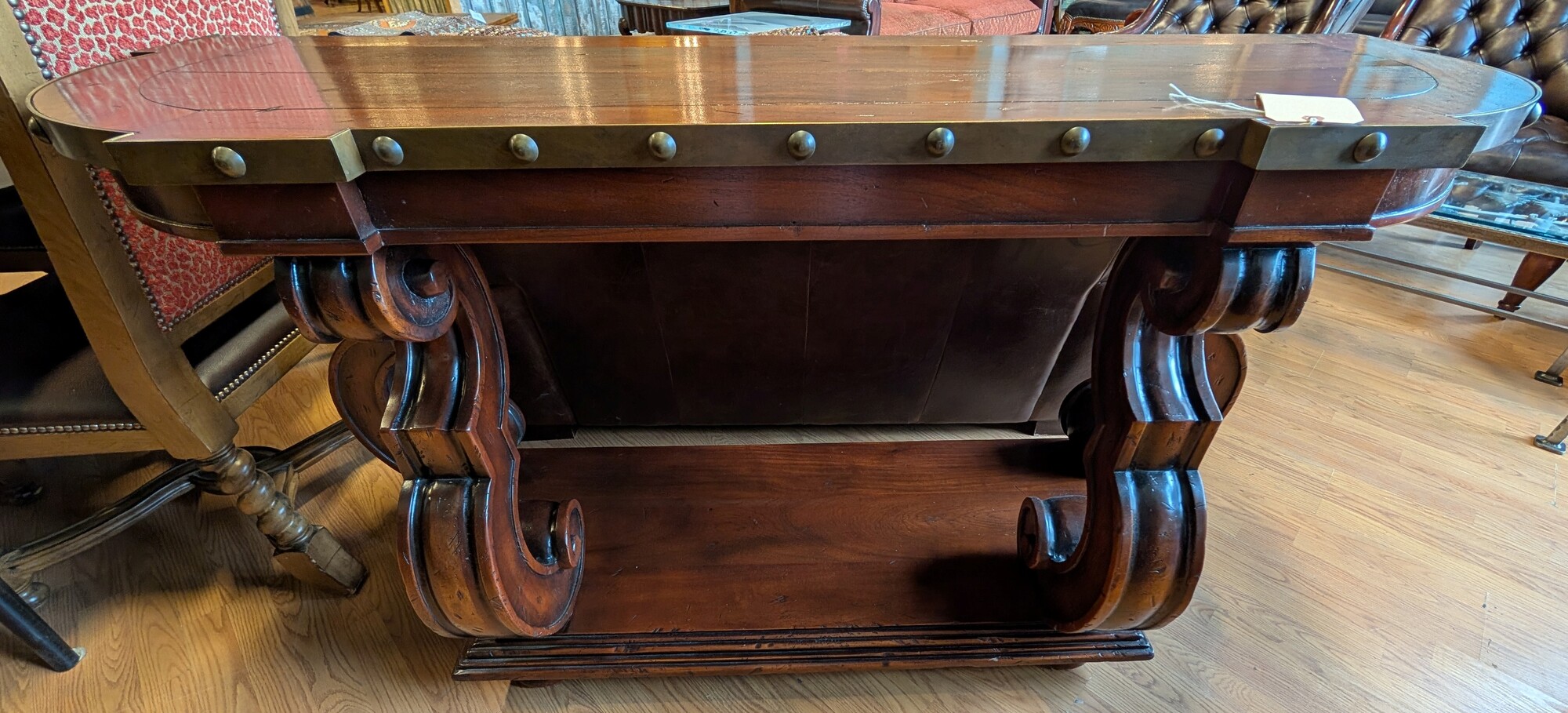 Sarreid Metal Trim Sofa, Shelf, Curved lLegs 50.5 x 20 x 34h