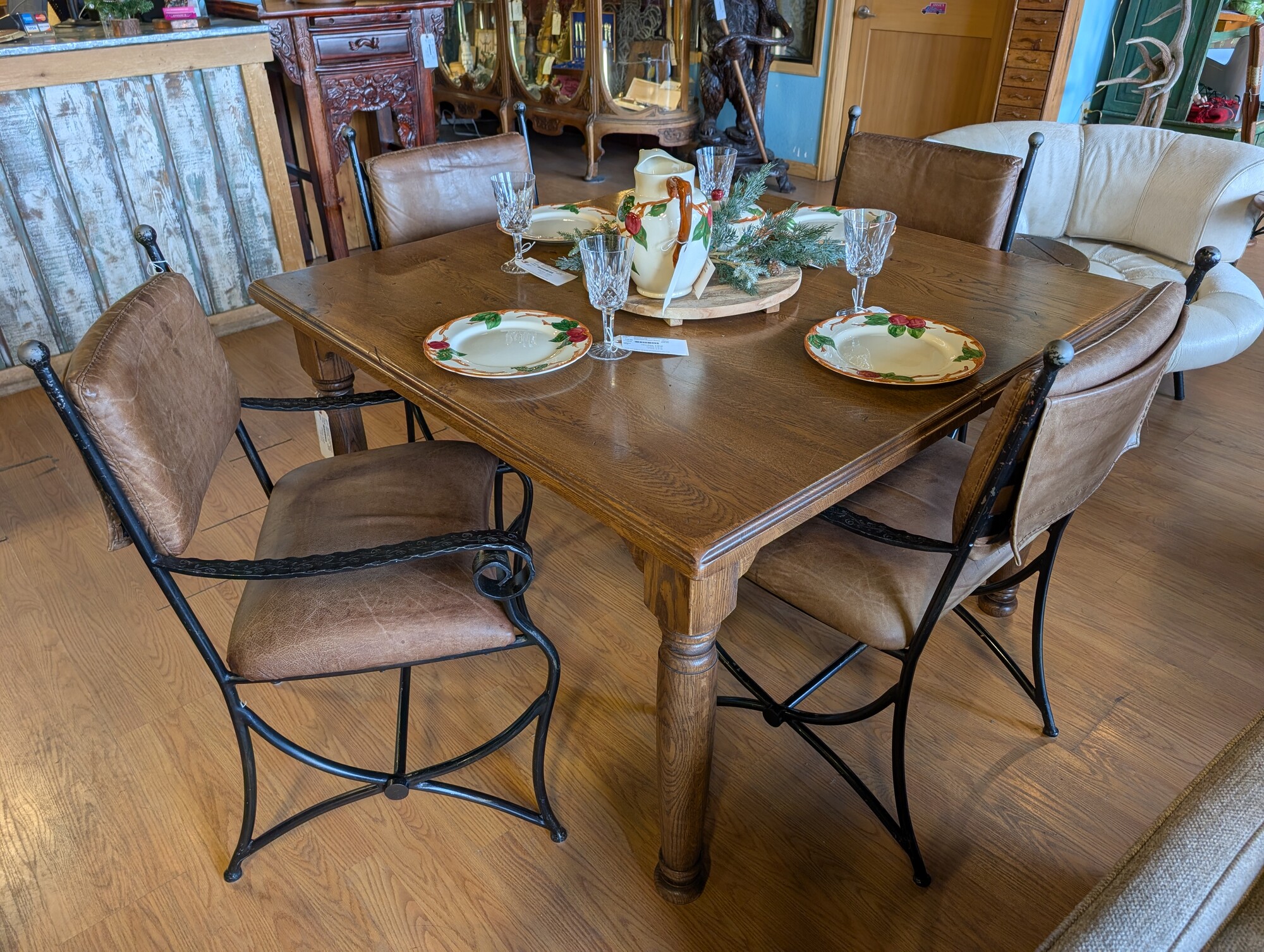 Scrolled Iron & Leather, Cibola, Set Of 4 21 x 20 x 38h Arm Height 25.5 Seat Height 21