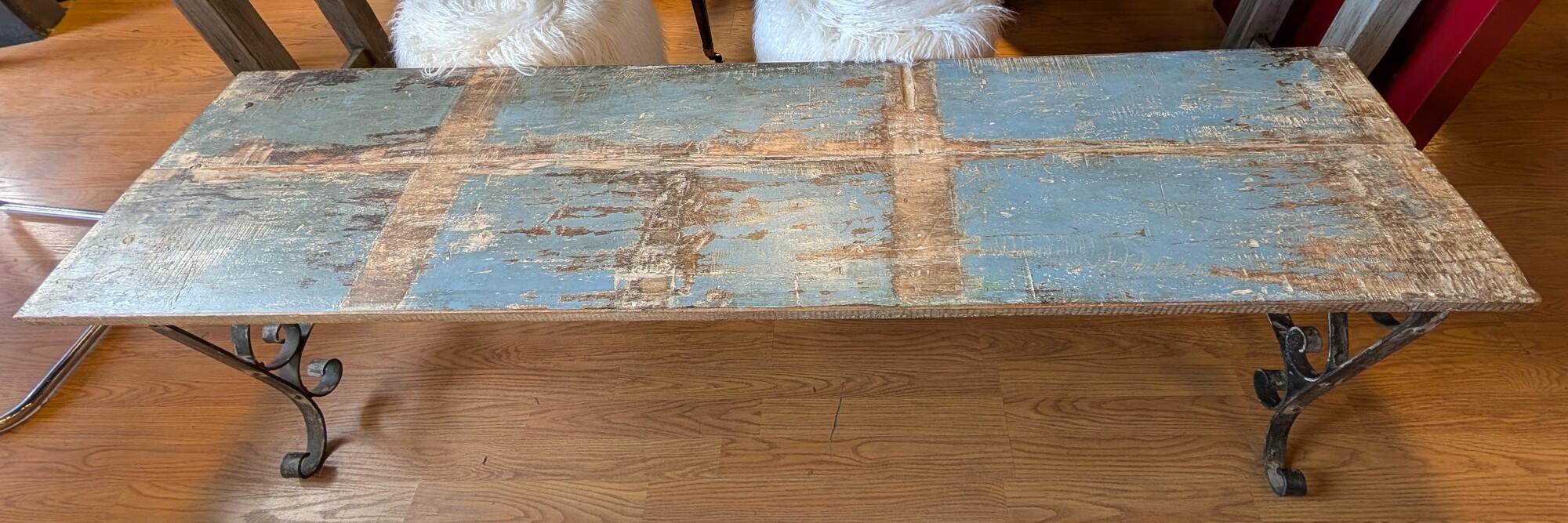 Shabby Chic Wood & Iron, Painted, Antique 66 x 17 x 19h