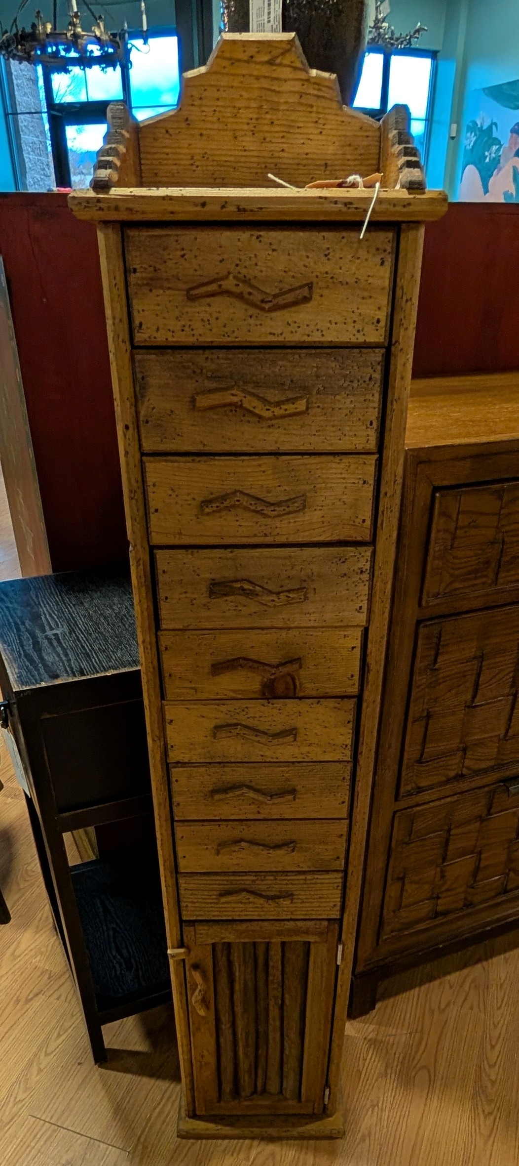 Skinny Pine Cabinet, Door, 9 Drawers 18 x 8 x 53h
