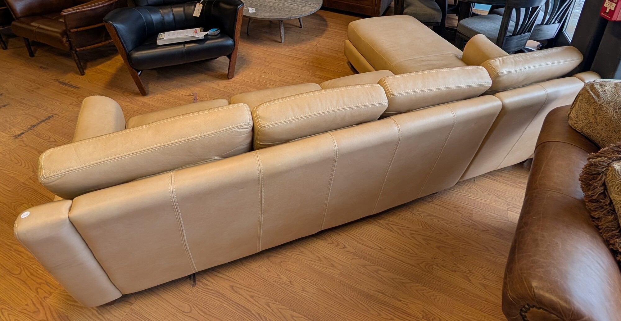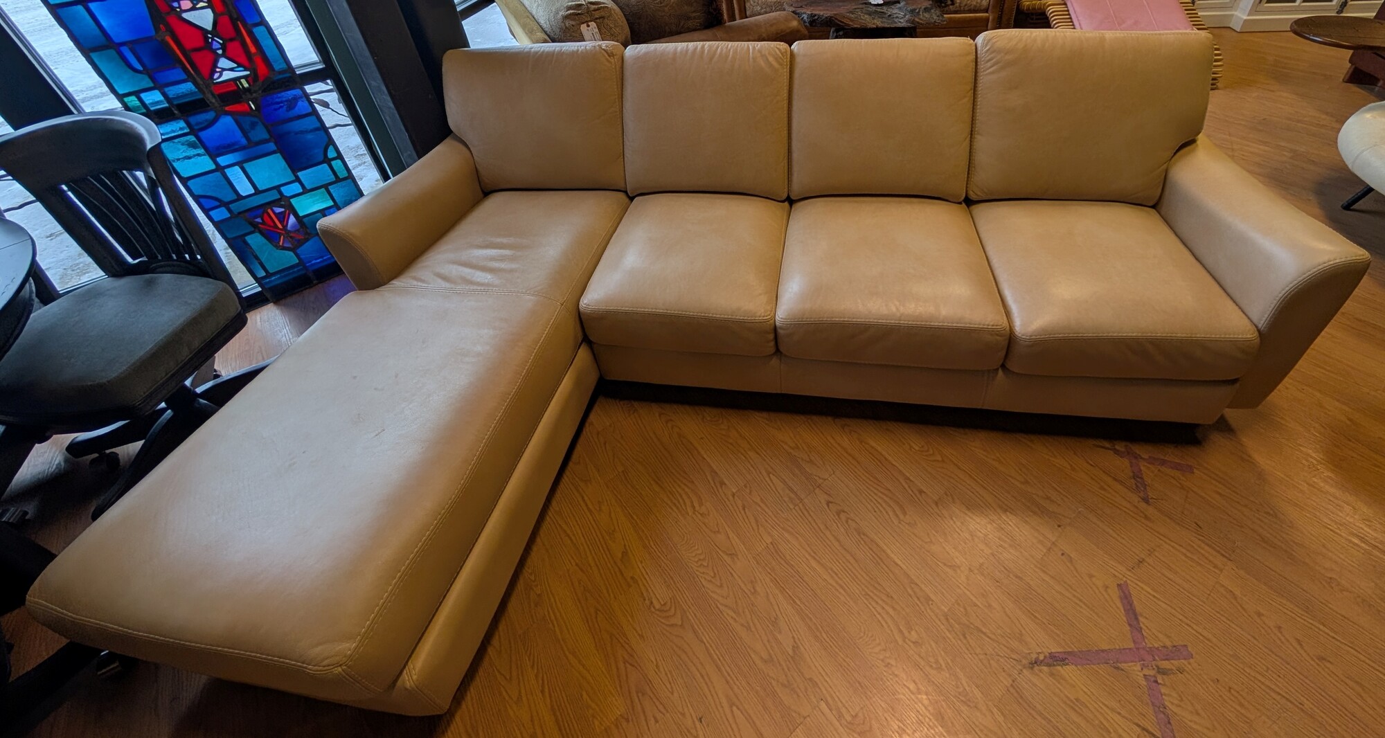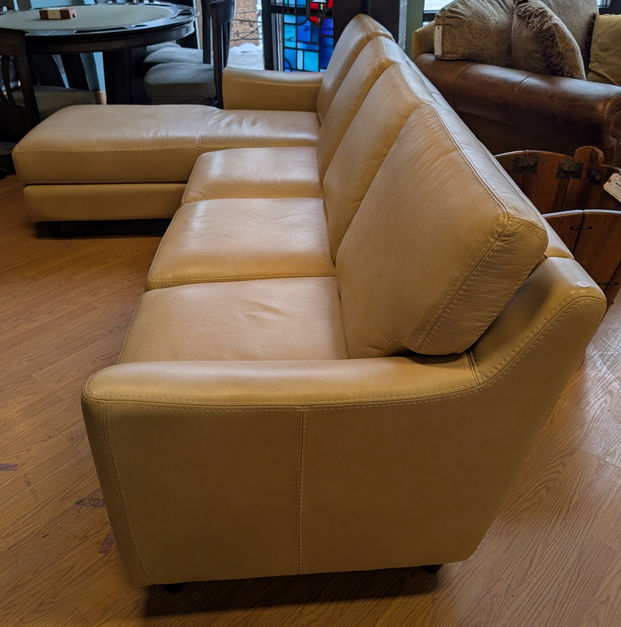 Sofa W/chaise Cream, Omnia Leather 102 x 35 x 35h Sh 17in Sd 20in
