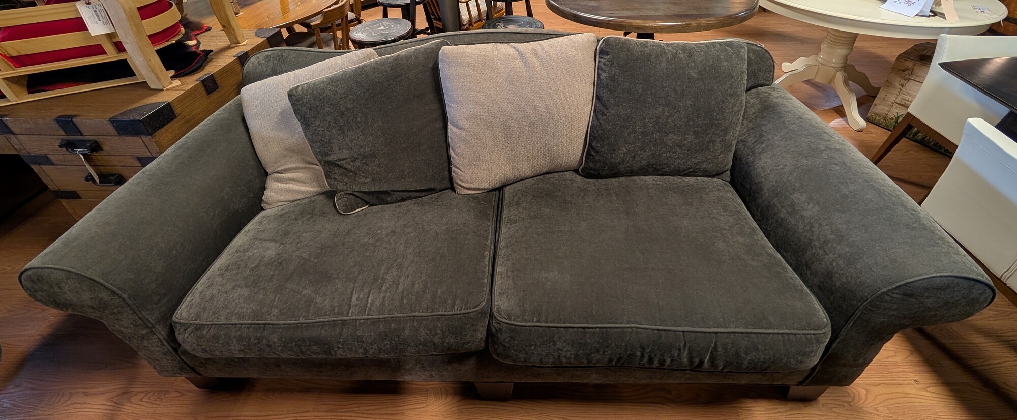 Spinning Wheel Curved Arm Sofa, Olive Green 94 x 38 x 36h