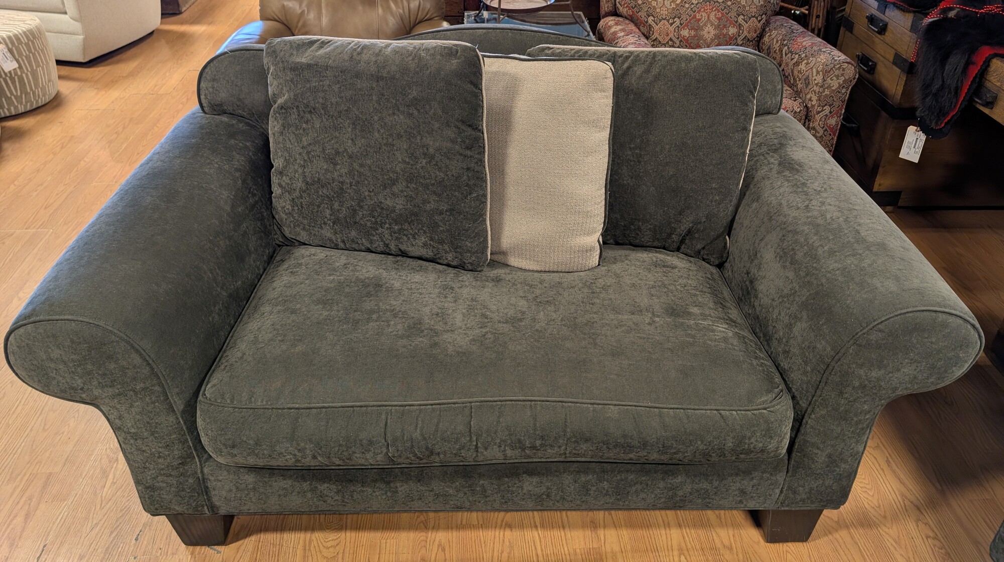 Spinning Wheel Loveseat, Olive Green 70 x 38 x 36h