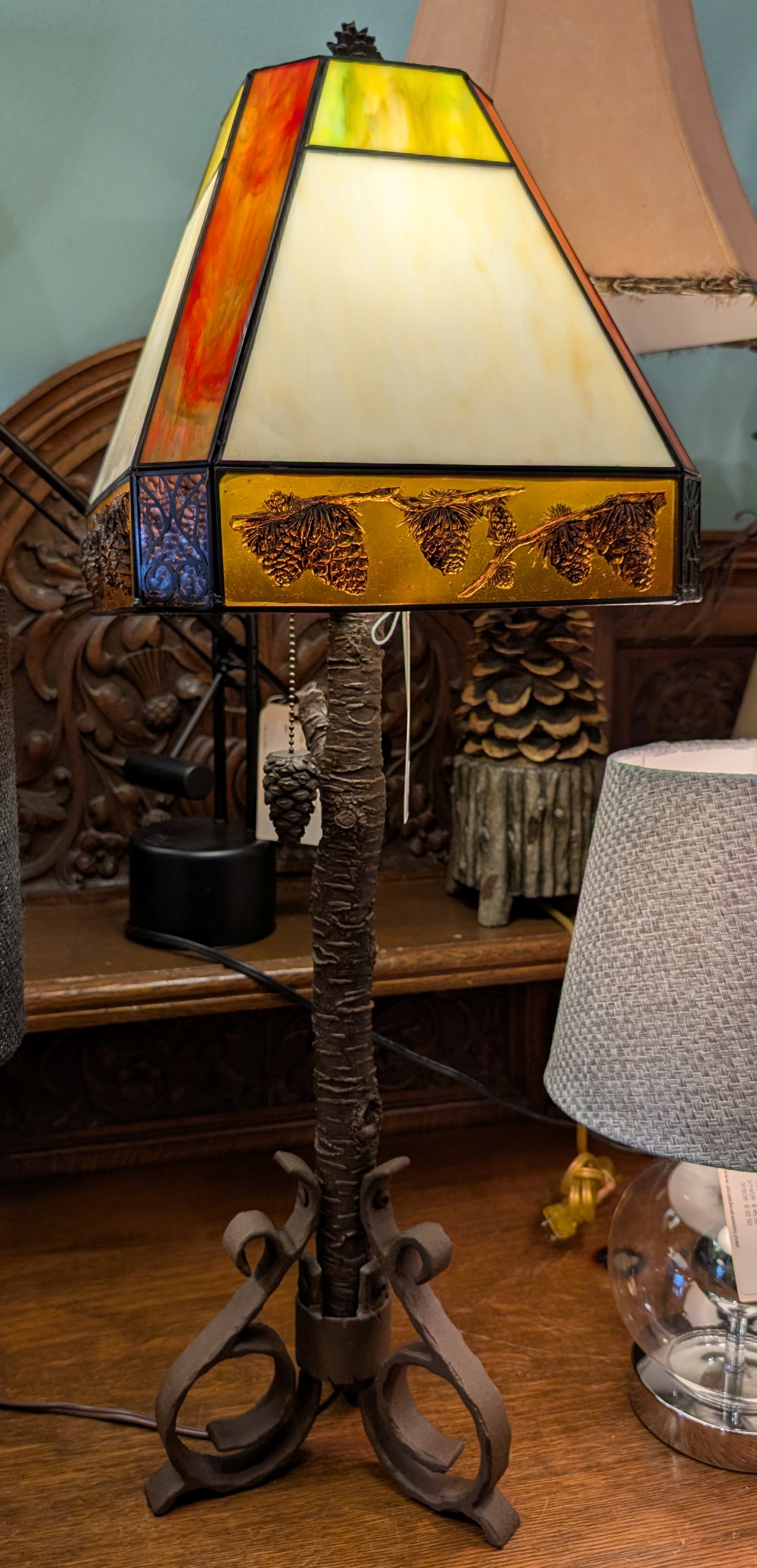 Stainglass Shade, Pinecone & Branch
