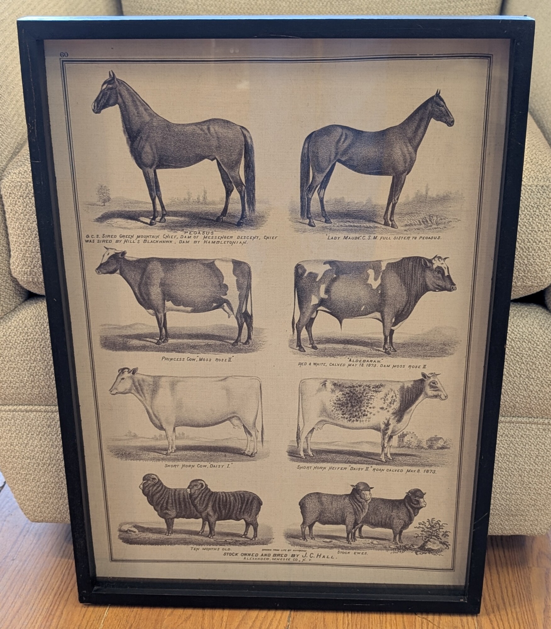 Stock Owned Cows Horses, Print, Framed 16.5 x 23h