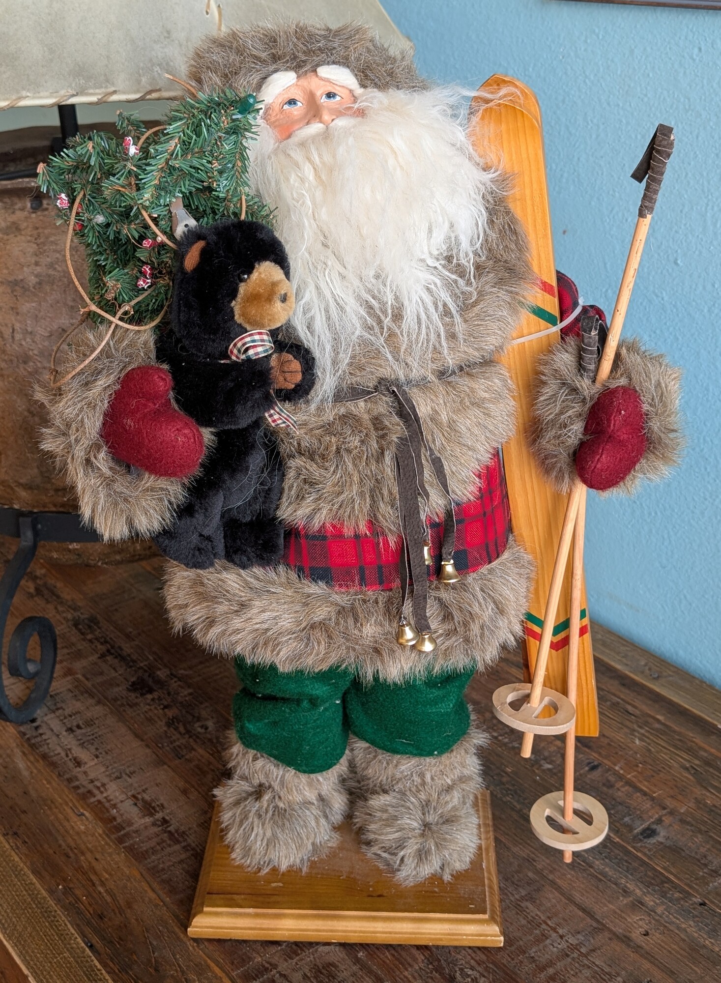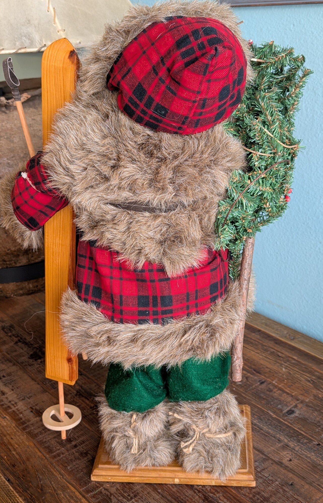 Tall Adirondack Santa, Skis,Fur, Beard 16 x 26h
