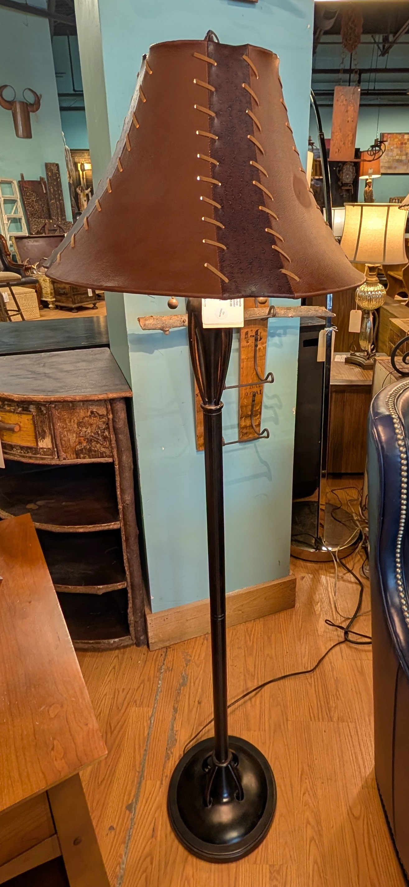 Tiffany Style Floor Lamp, Quoizel, Size: Leather Shade 18 x 61h