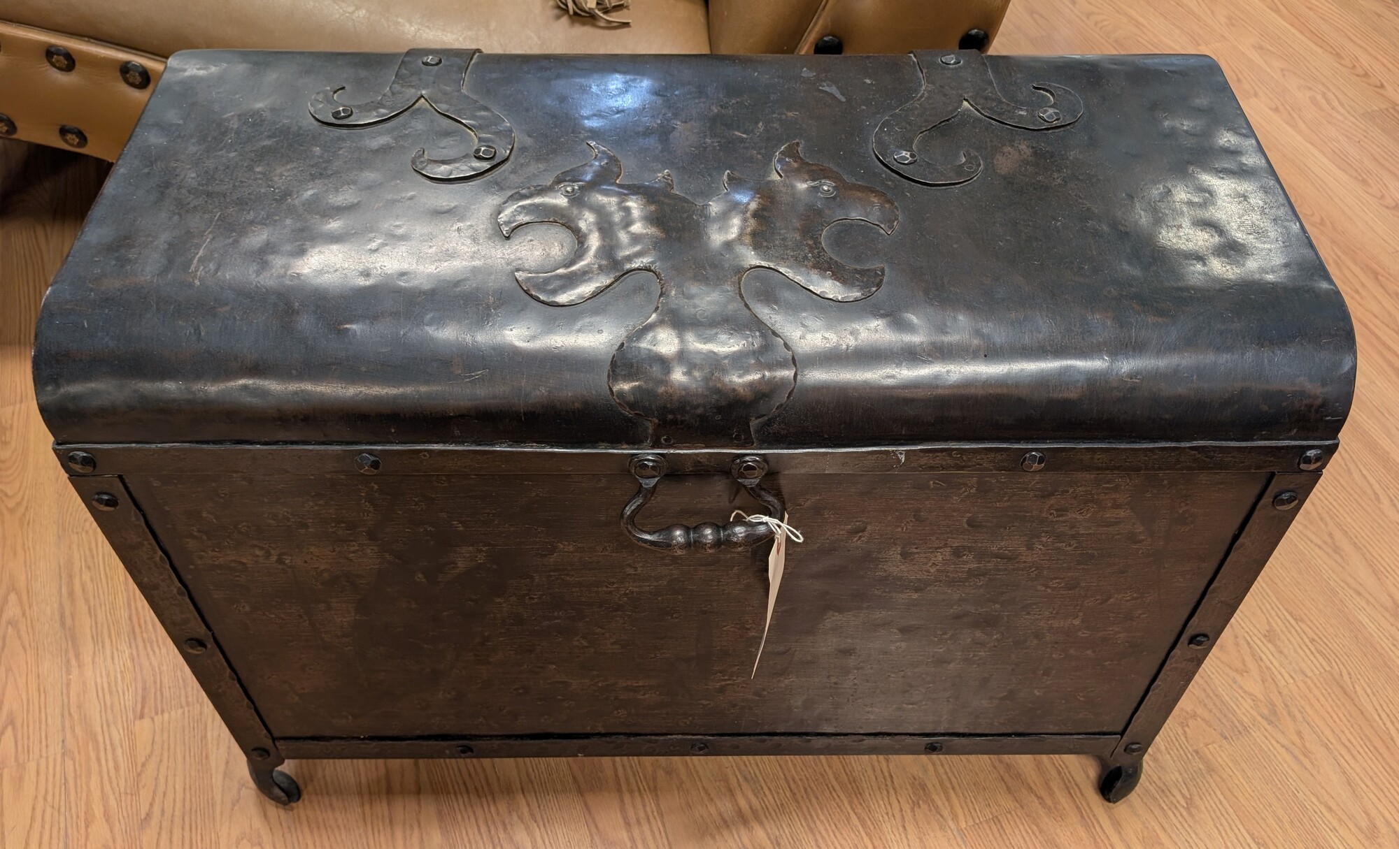 Vintage Metal Trunk, Gray, Handled 34 x 17 x 21h