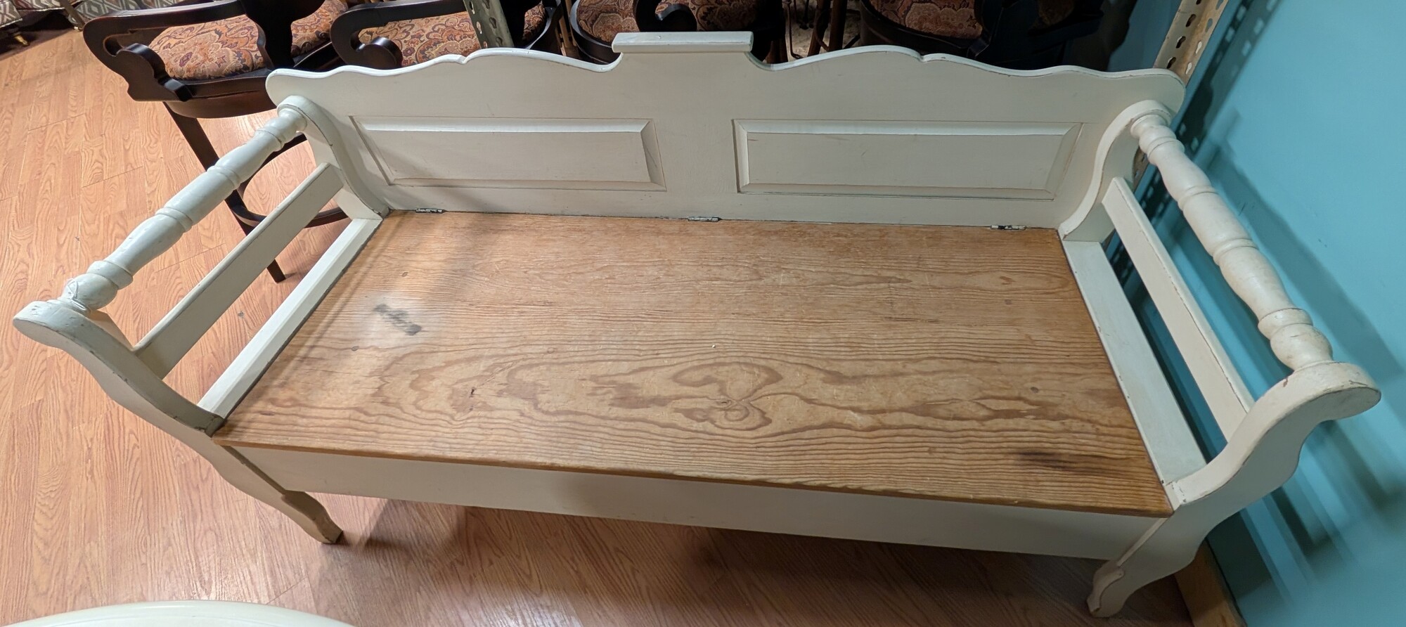 Vintage Pine Bench, White, Storage 65 x 21.5 x 34h