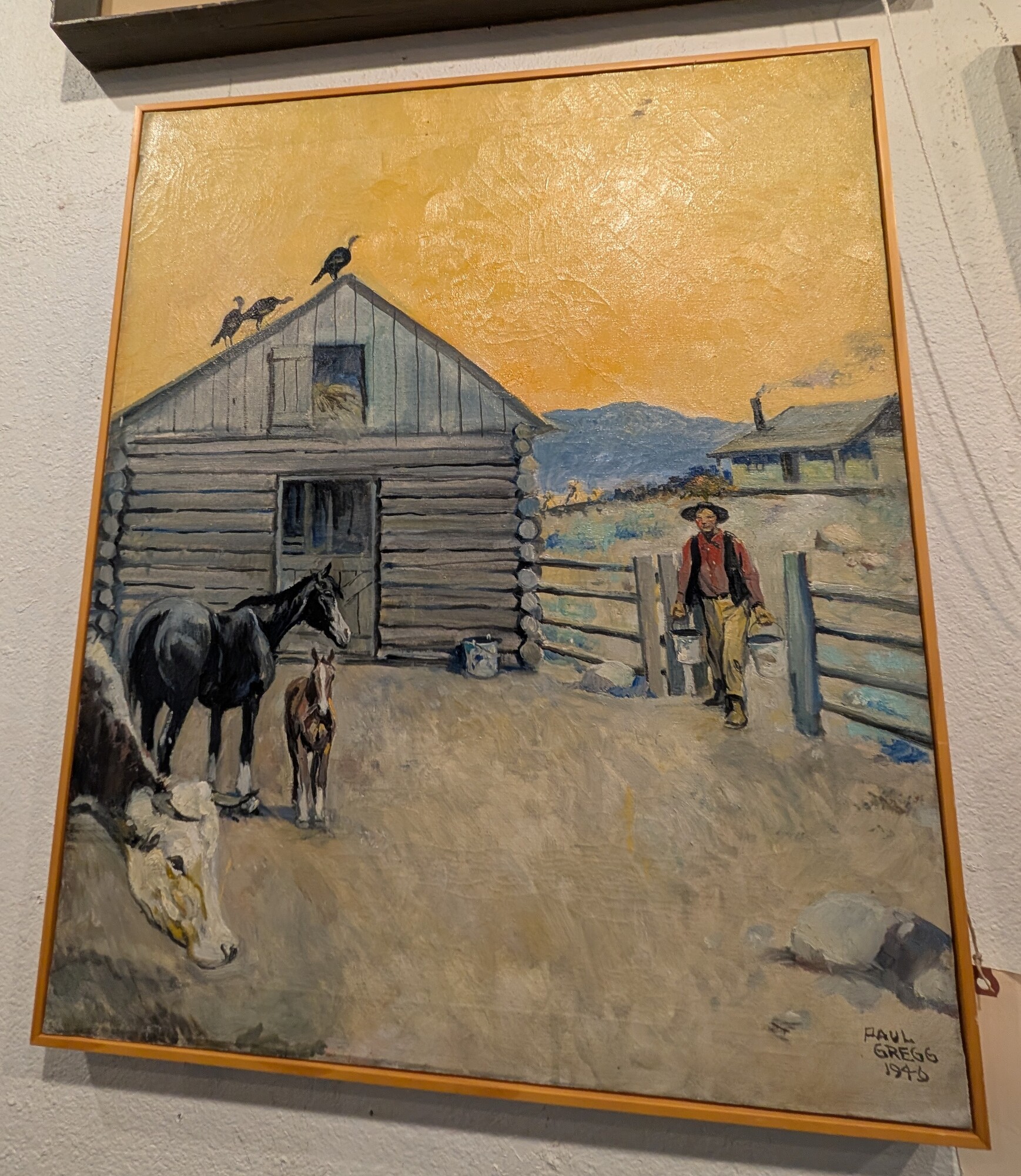 Western Americana Cabin, Original, Paul Gregg Good Ol Days Painter of Sunday Post, Colorado History 1876-1949 23w x 28h
