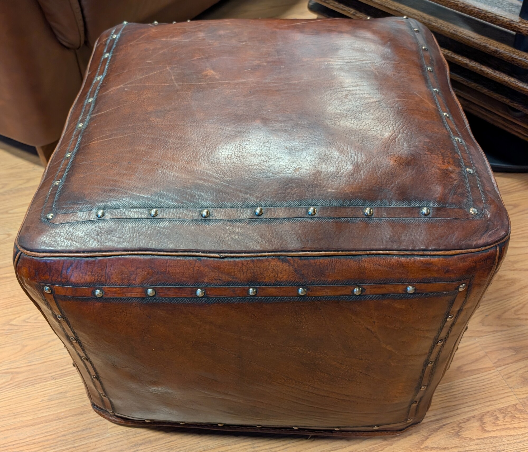 Western Leather Cube, Nailhead, Brown, Heavy 22 x 22 x 17h