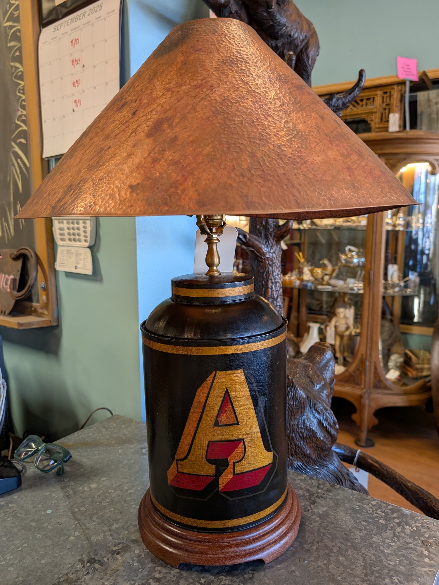 Wood *A* Lamp Table, Copper Shade 20 x 26h