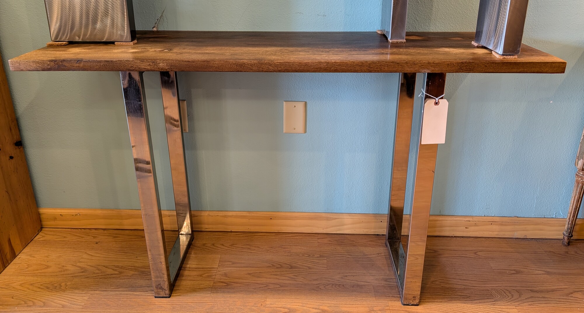 Wood & Metal Console AS IS rust and scratches on base 51 x 16 x 30h