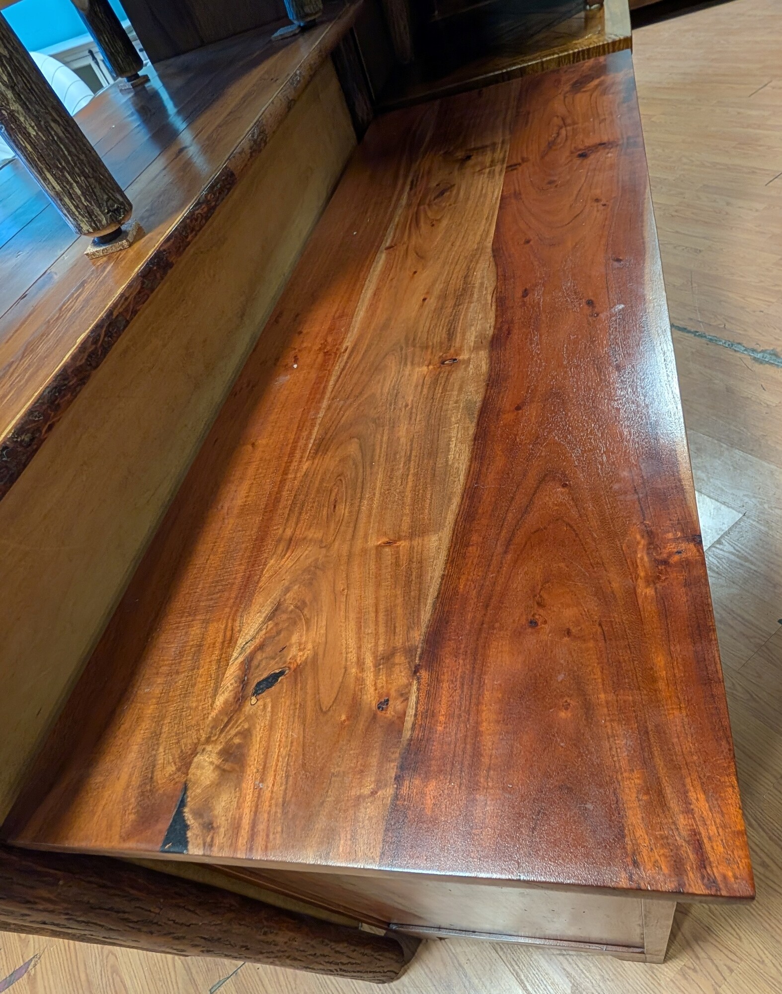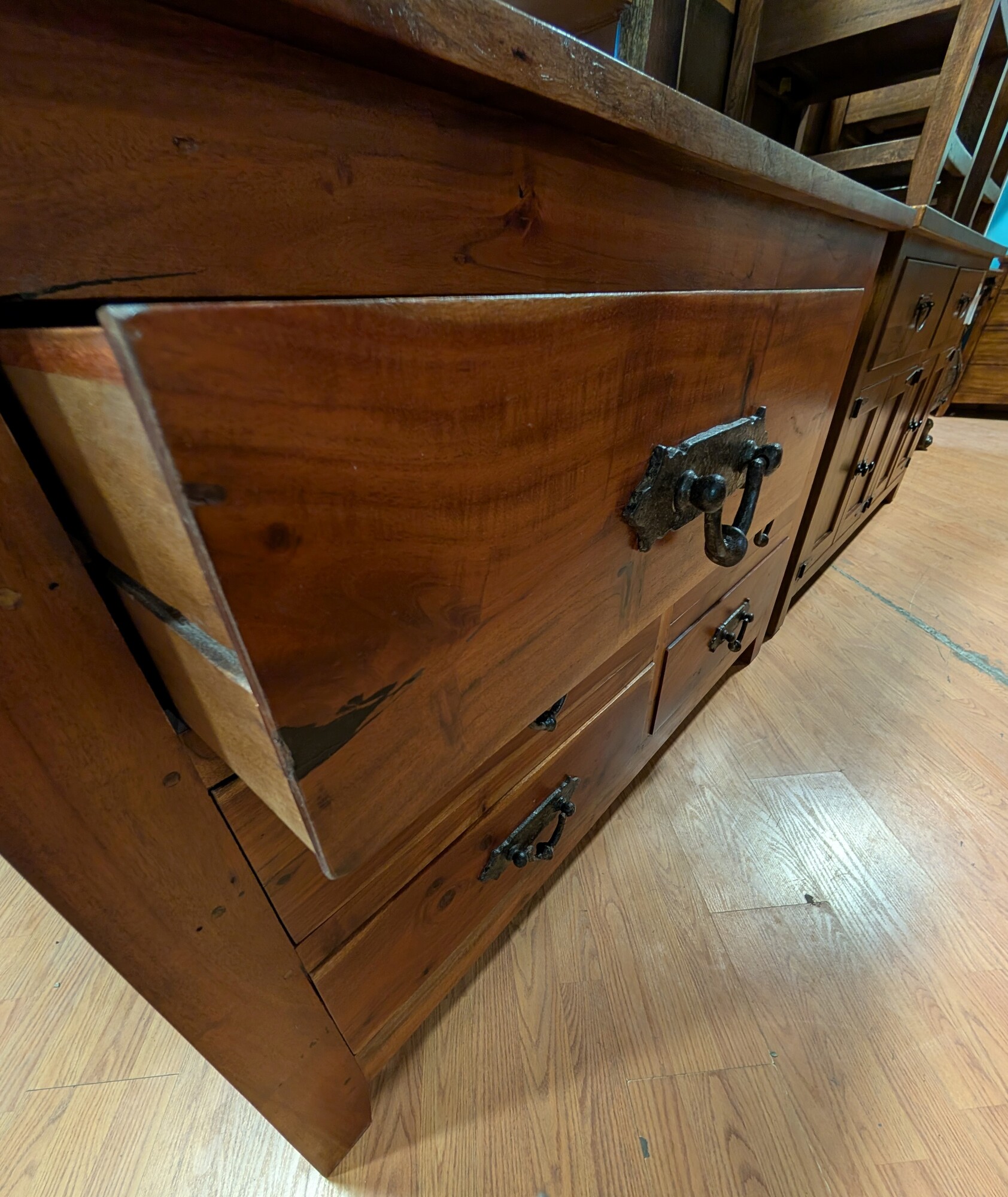 Wood W/Metal Pulls, Dark Stain, 6 Drawer 56 x 20 x36h