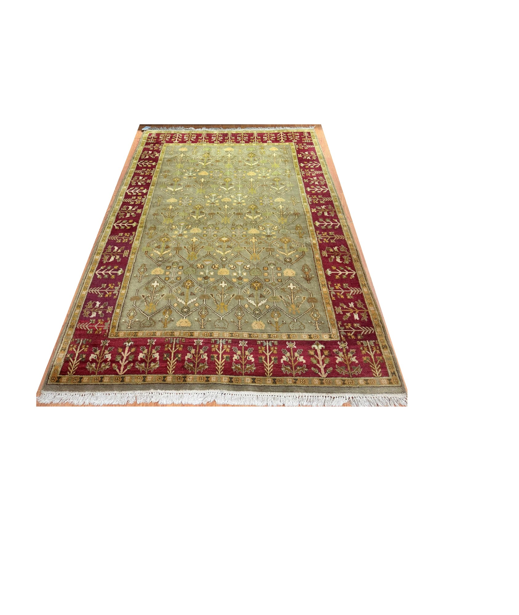 Wool Morris Style Rug, Sage Burgandy 6 X 9